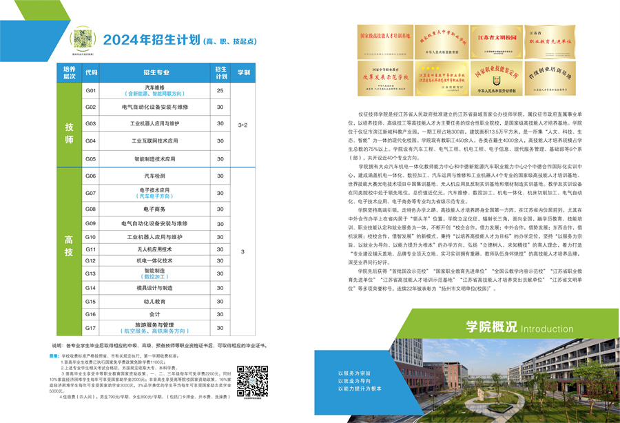 仪征技师学院2024年招生简章