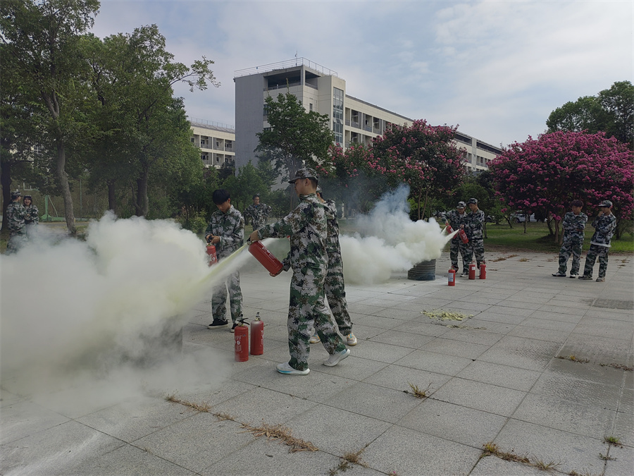 教官着重讲解并演示了干粉灭火器的“五步”使用法:“看、提、拔、瞄、压”。最后,师生轮番上阵进行了油盆灭真火演练,在教官的指导下,大家使用