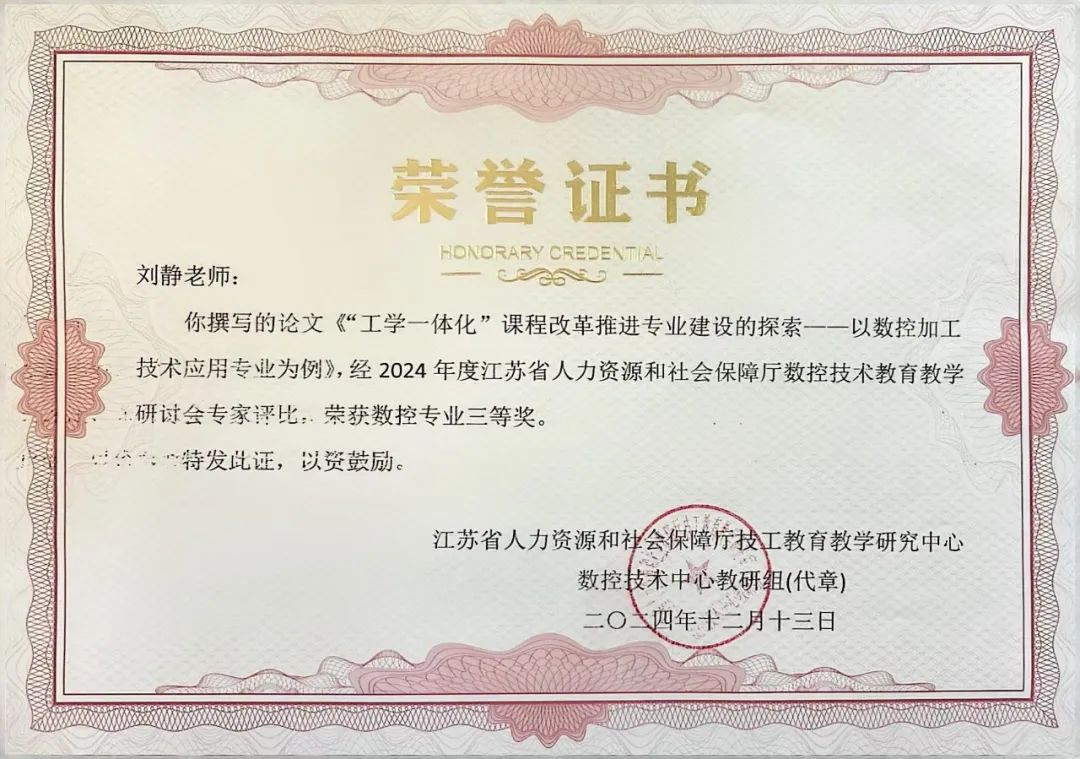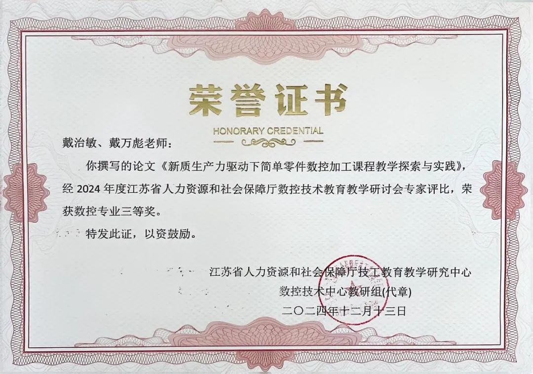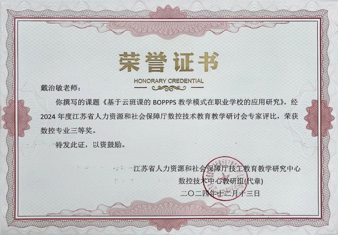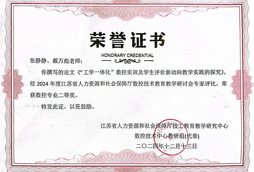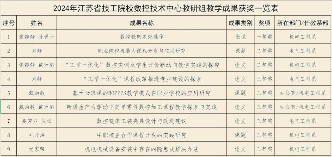 近日,江苏省技工院校数控技术中心教研组2024年度教科研成果评比结果揭晓,学院共获得一等奖1项,二等奖2项,三等奖6项。