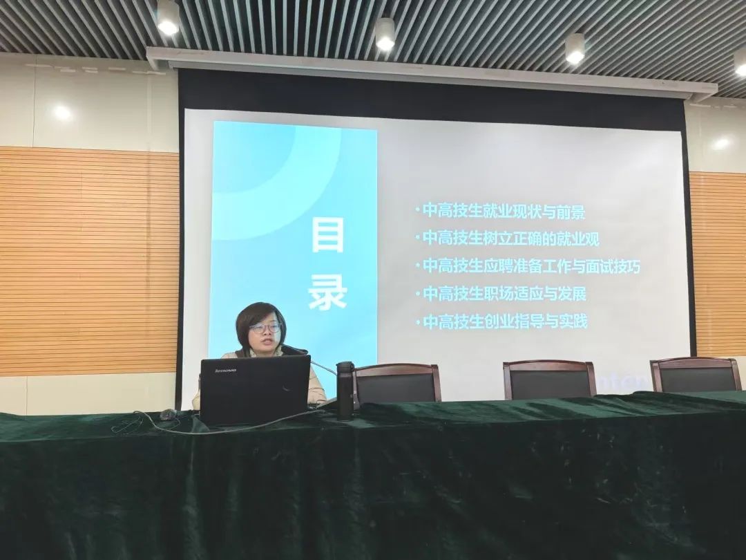 为进一步贯彻落实国家就业政策,促进毕业生高质量就业,12月17日,仪征技师学院现代服务管理系举办“理清现实 职面未来”专题讲座。本次讲座由仪征市名班主任、学院招就处副主任周国红主讲,现代服务管理系2025届全体学生参加,讲座由系学生科张慧老师主持。