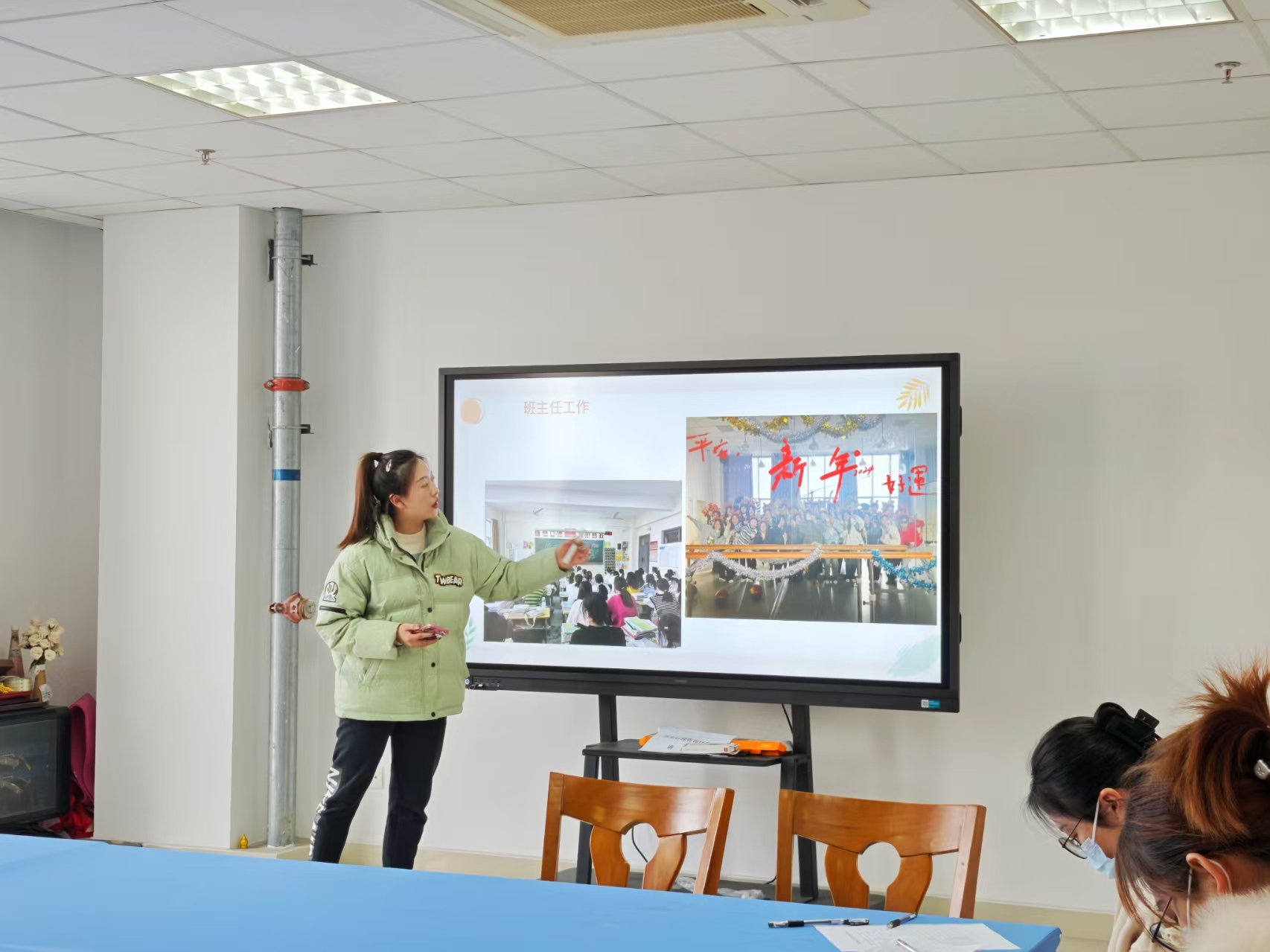 35周岁以下的青年教师围绕 工作表现进行汇报,接受系领导班子及各科室负责人考核评分。会上,15位青年教师详细汇报了2024年度在思想品德、勤奋工作、综合能力、工作业绩等方面的表现,重点分享了教学实践、班主任工作、教科研成果、技能大赛指导和招生工作经验,并规划了2025年的工作目标。