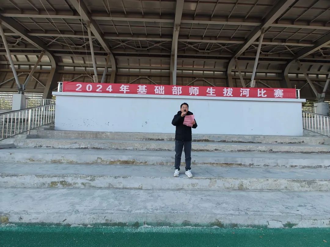 赛前,基础部部长张如仁发表讲话。他指出,希望通过拔河比赛增进师生情感、增强班级凝聚力,展现基础部师生的精神风貌和青春风采。