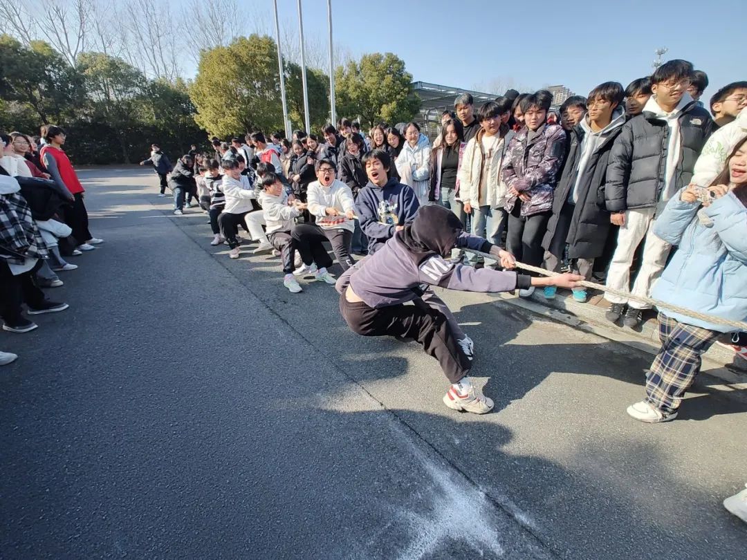 赛场上,各班队员早已摩拳擦掌,严阵以待。随着裁判的一声令下,选手们立刻紧握绳索、咬紧牙关,大家劲往一处使、拧成一股绳,全力以赴、奋勇拼搏。
