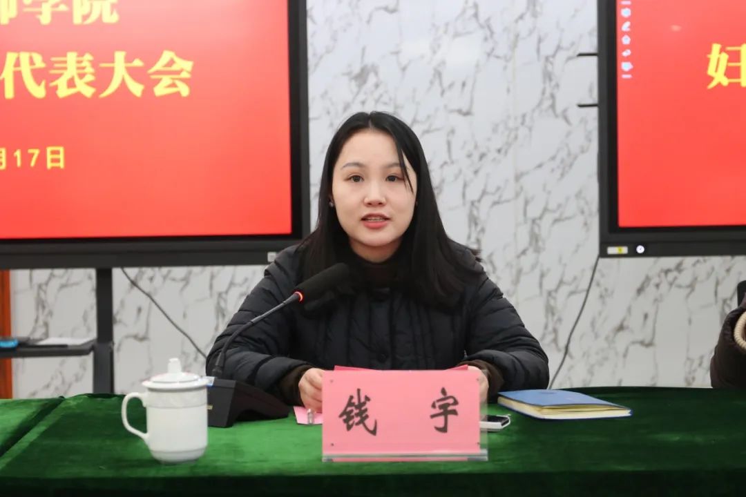 钱宇副主席对大会的顺利召开表示热烈祝贺,同时对学院妇联工作提出希望:一是思想领航,把牢新时代妇女工作正确方向;二是服务保障,当好女职工坚强后盾;三是守正创新,不断开创妇女工作新局面。以“妇女能顶半边天”的智慧点亮梦想、实现人生价值,推动学院各项事业再上新台阶、再创新佳绩。