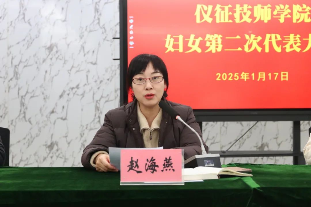 1月17日下午,仪征技师学院妇女第二次代表大会圆满召开。仪征技师学院副院长赵海燕、妇女职工代表、列席人员共59人参加会议。院办公室主任杨薇主持会议,市妇联副主席钱宇受邀出席。