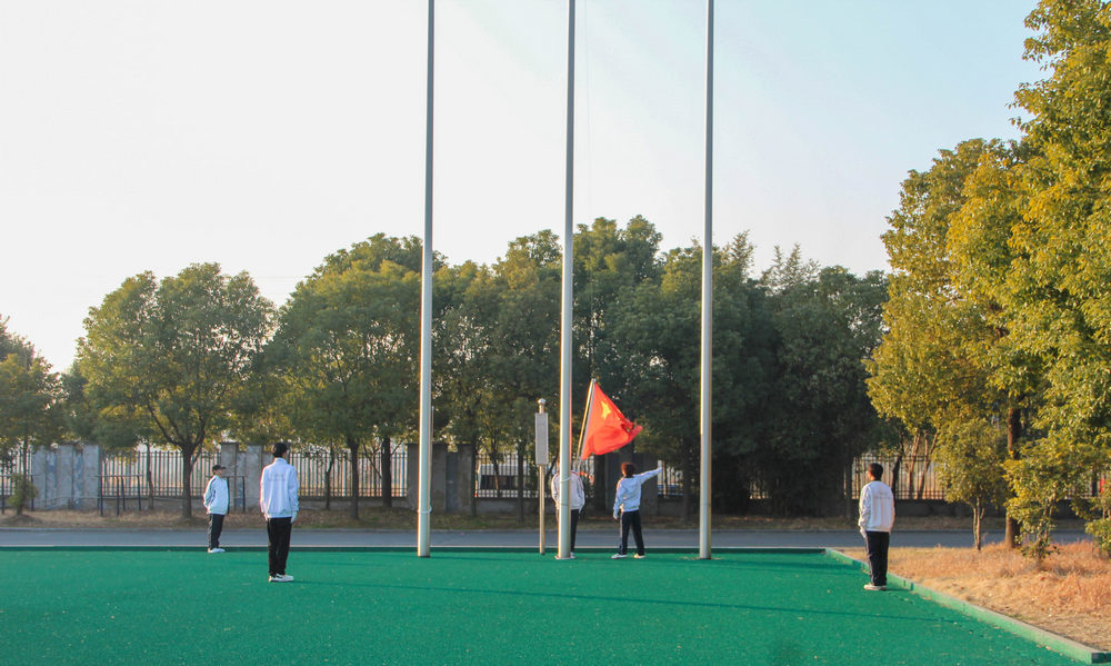 7时30分,升旗仪式正式开始,国旗护卫队迈着整齐有力的步伐护送国旗走向升旗台。伴随着雄壮的《义勇军进行曲》,全体师生庄严肃立,向国旗行注目礼,高唱国歌,表达对祖国的无限热爱与崇高敬意。
