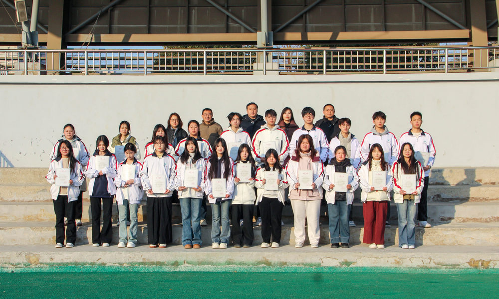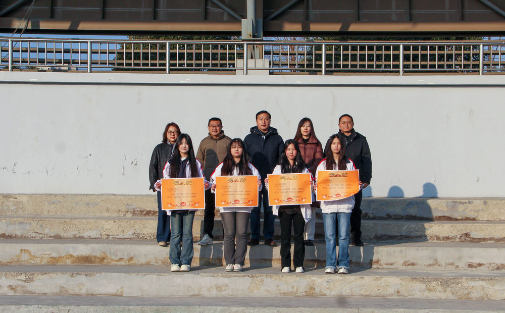 优秀学生代表上台领奖,他们手捧奖状,脸上洋溢着自豪的笑容。
