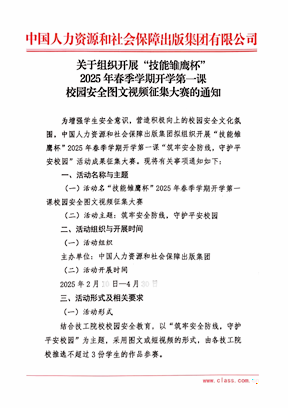 按照《关于组织开展“技能雏鹰杯”2025 年春季学期开学第一课校园安全图文视频征集大赛的通知》要求,学院积极响应、广泛宣传,鼓励各系部学生积极投稿参赛,通过短视频的形式普及安全知识。