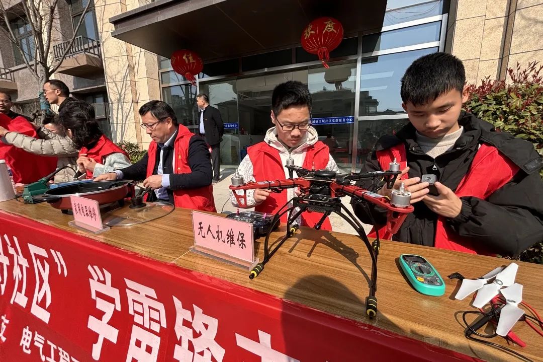 为进一步弘扬和传承雷锋精神,3月19日下午,仪征技师学院汽车工程系党支部、团总支,电气工程系党支部、团总支与江城社区党支部携手,在江城社区党群服务中心门口开展志愿服务活动,为社区居民带来专业贴心的汽车检测保养、家电维修与无人机维保服务。