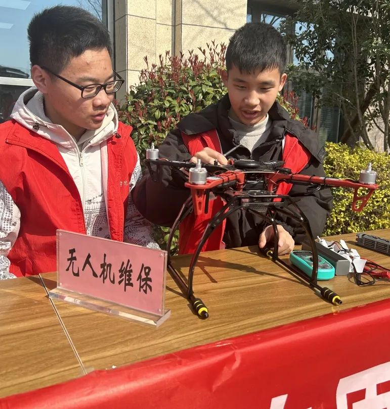 在无人机维保展示区,志愿者一边演示,一边讲解无人机原理、应用场景及日常保养方法,吸引众多居民围观,激发了大家对科技的兴趣。