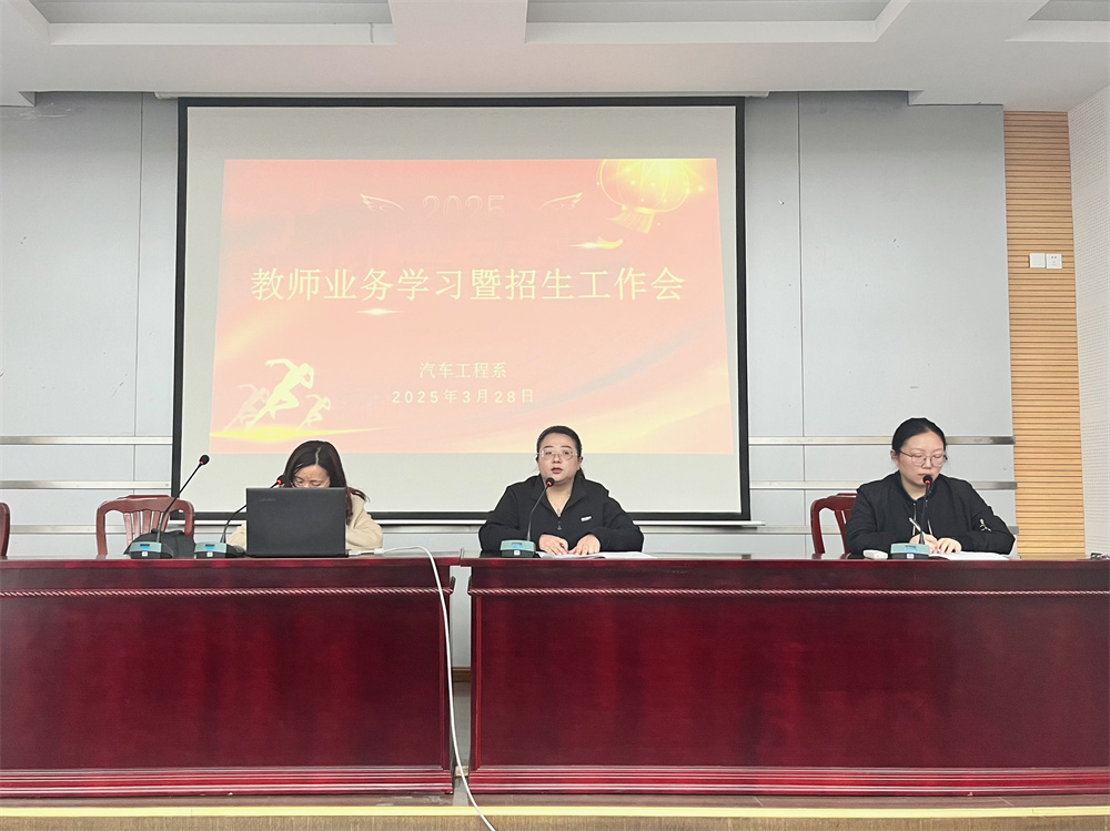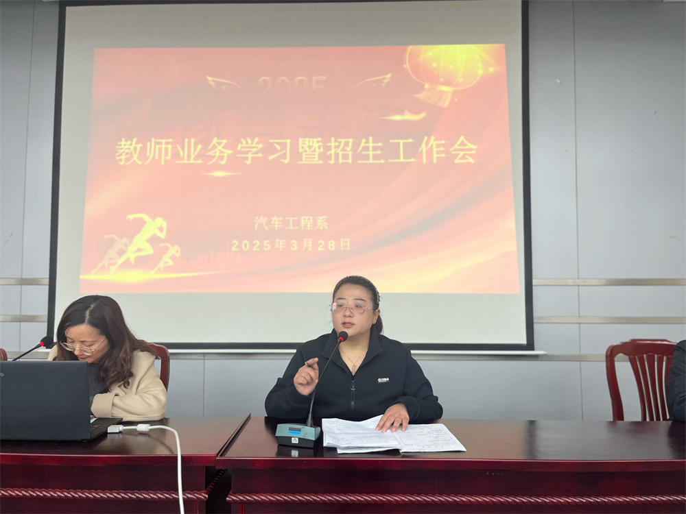 3月28日下午,汽车工程系召开教师业务学习暨招生工作会议,系部全体教师参加会议。会议由系办公室副主任丁春玲主持,系主任陈宝珍对招生工作进行部署。