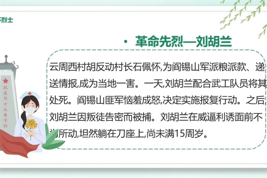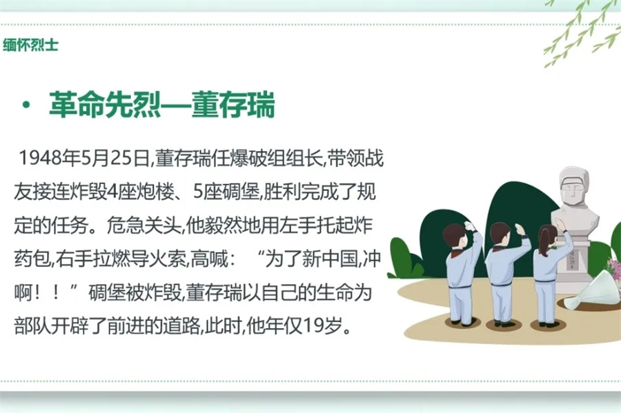 老师们满怀深情地讲述了先烈们的英勇事迹,一个个震撼人心的故事,让学生们仿佛穿越时空,亲眼目睹了先烈们为了民族解放及幸福,不惜抛头颅、洒热血的壮烈场景。大家积极讨论并分享自己对传承先烈精神的理解与感悟,表示要珍惜现在的美好生活,努力学习,以实际行动表达对先烈的敬仰,为祖国建设贡献自己的一份力量。