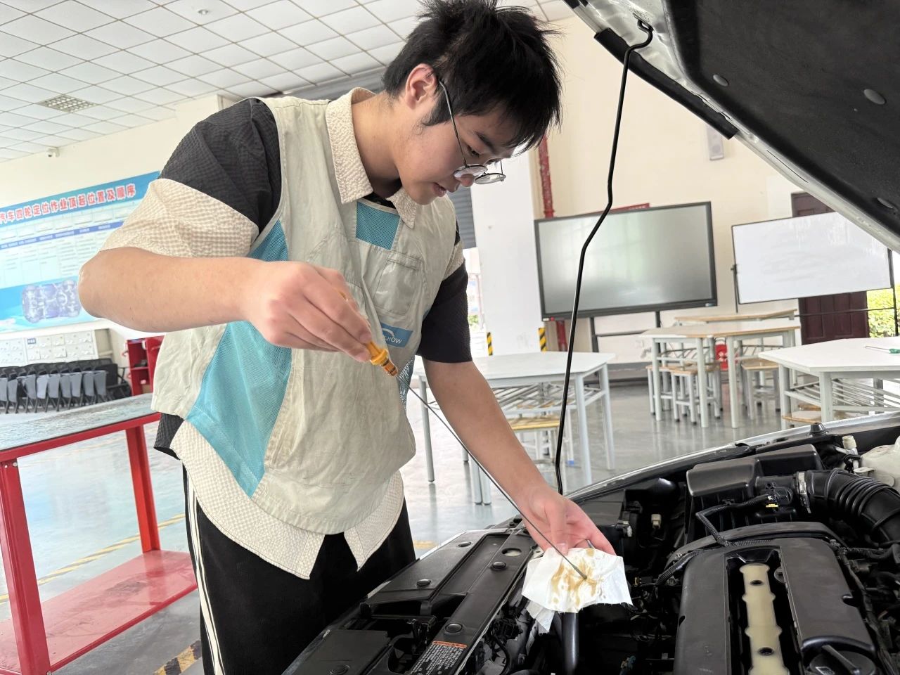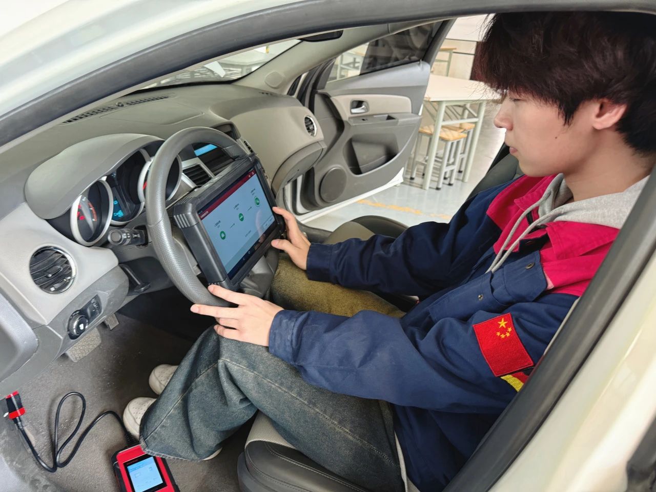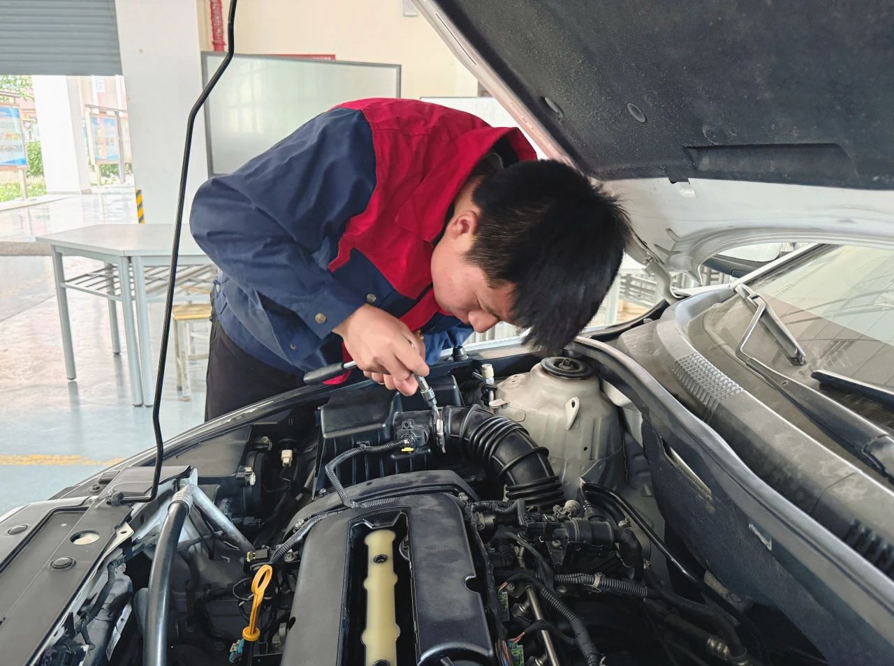 “车管家”汽车服务社团秉持“技能buff叠满,服务快乐拉满”的宗旨,在汽车保养、故障诊断、基础维修等任务中不断“打怪升级”,在校园里“大展身手”,专治各种汽车“疑难杂症”。在汽车专业教师杨定军和李万奎的专业护航下,不管是车辆突发的细微故障,还是行驶途中的棘手难题,社团成员们总能化身“汽车医生”,快速解决问题,堪称师生出行的“最强后援团”。