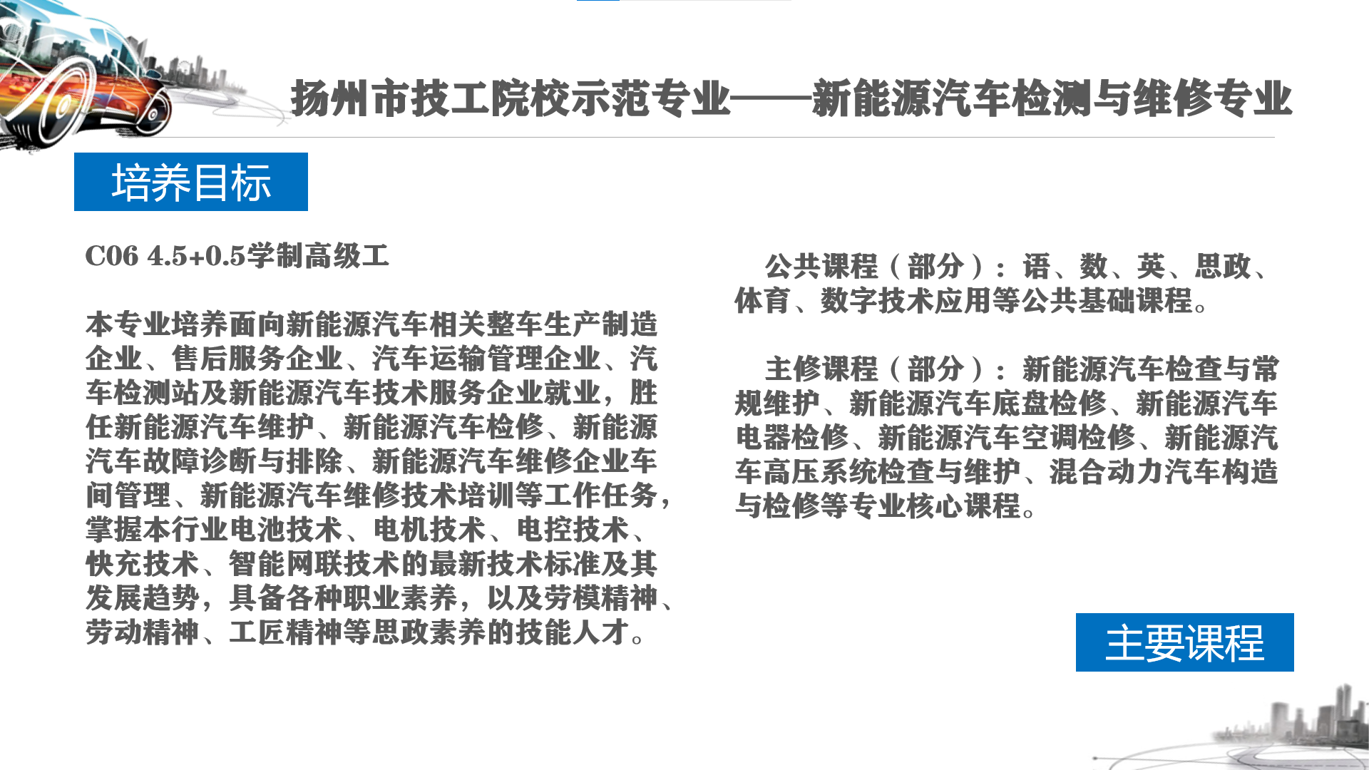 ——新能源汽车检测与维修专业