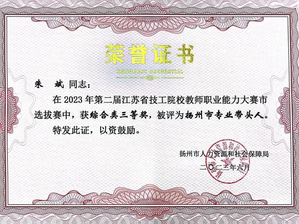 在教学上,朱斌老师注重理论与实践相结合,她指导学生参加江苏省职业学校技能大赛,并多次荣获二、三等奖。此外,朱斌老师积极参与市级课题研究,主编校级云教材,多篇论文获奖或发表。