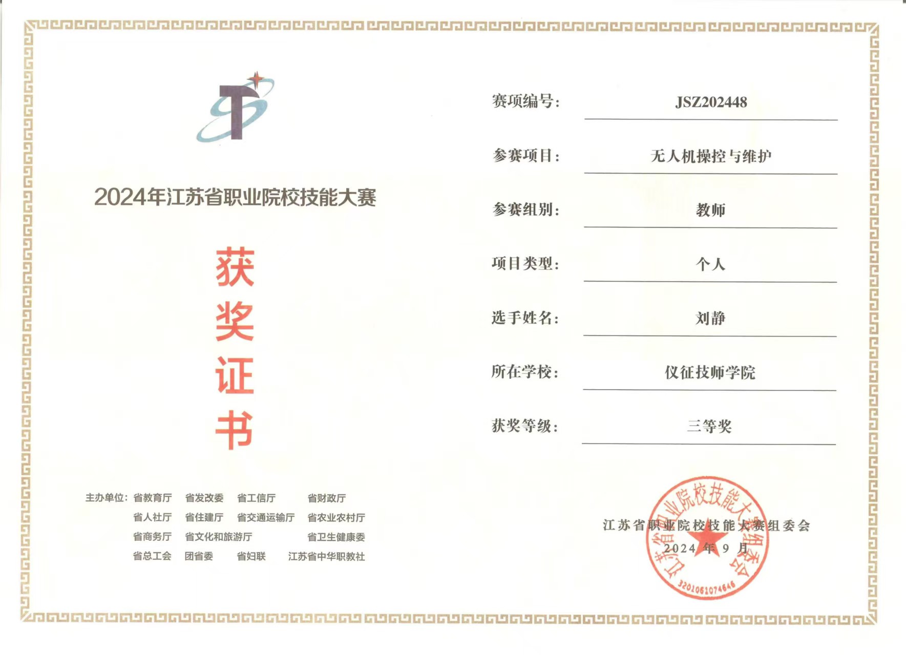 江苏省专业带头人,江苏省技术能手,江苏省五一创新能手,仪征市金牌职工。维修电工高级技师,电工高级考评员,从事电气自动化、工业机器人应用技术、工业视觉等专业课程教学。多次指导学生在省市技能大赛中获得一等奖。