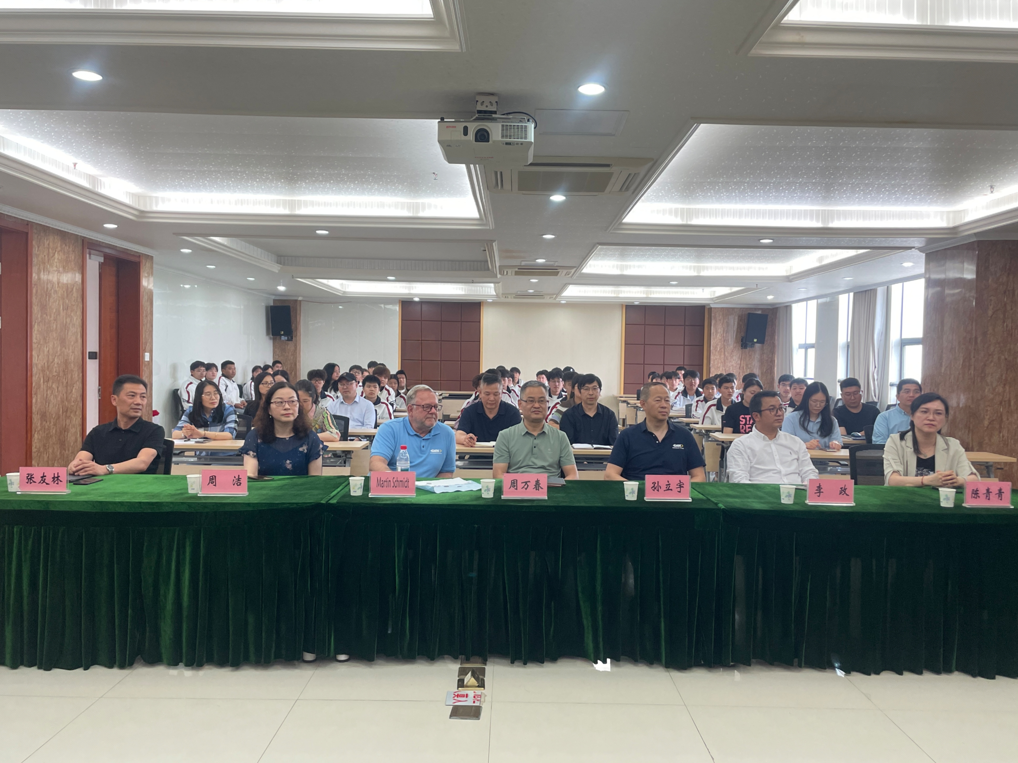 Martin Schmidt先生分享了个人成长经历及粉末冶金技术。他手持吉凯恩生产的粉末冶金高强度金属零件,向在场的师生代表们详细讲述了“从粉末到精密零件”的制造全流程,生动诠释了粉末冶金技术的精度达到微米级。这一沉浸式分享让在场学生直观感受到技术创新与职业成长的双重魅力,进一步深化了校企协同育人的实践内涵。