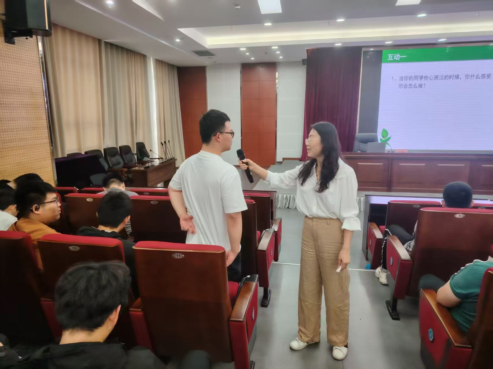 整个讲座过程中,学生们积极参与互动,分享自己的感受和经验。