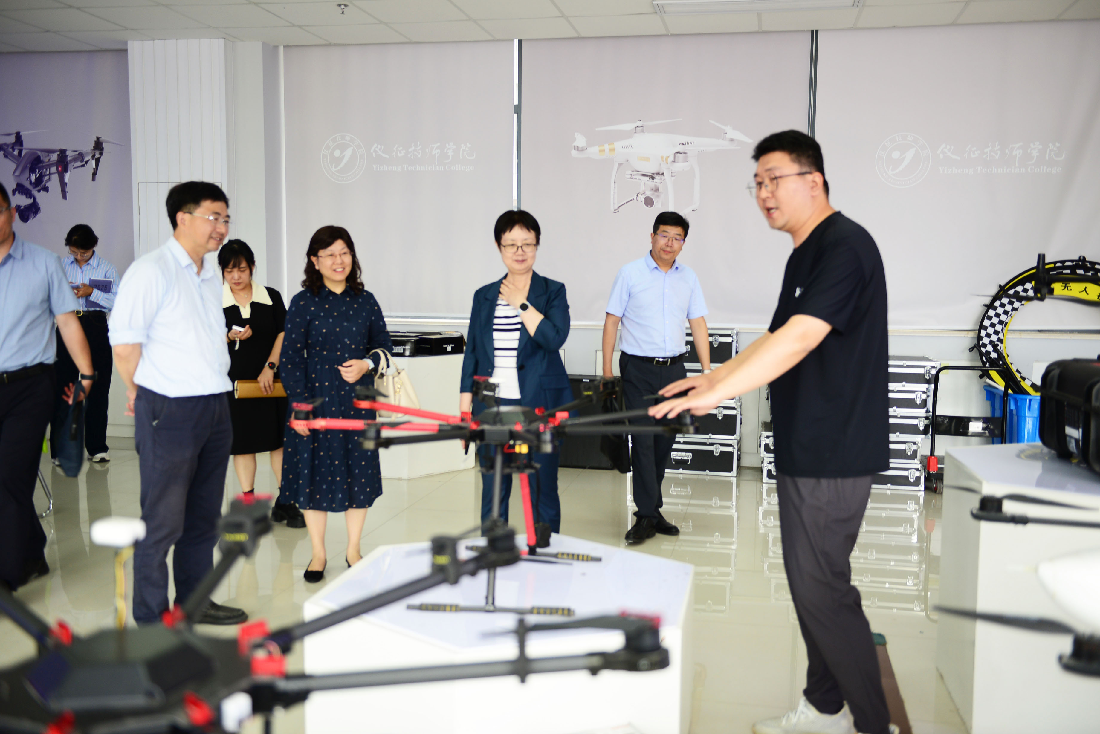 江苏省扬州技师学院一行实地参观了学院中德诺浩汽车营销实训基地、大众汽车机电一体化能力培训中心、光电技术项目世赛集训地、新一代信息技术产业学院、无人机实训基地等,并深入了解学院实训场地的建设情况。在参观过程中,双方重点就无人机基地建设、校企合作、技能人才培养等方面进行了交流探讨。