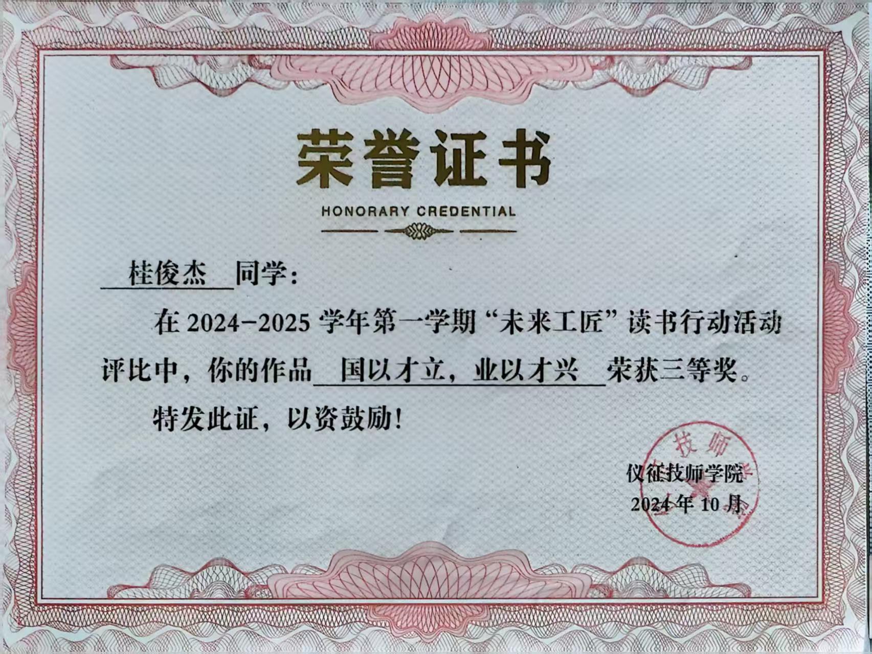 仪征技师学院汽车工程系优秀学子 在校园这片充满希望与活力的沃土上,汽车工程系的同学们以青春为笔,以汗水为墨,书写着属于自己的精彩篇章。吴长鑫、赵同菁、谭志国、桂俊杰四位同学作为我系的杰出代表,在学习、班级管理、志愿服务、技能竞赛等多个领域发光发热,展现出新时代青年全面发展、积极向上的精神风貌。 吴长鑫,21新能源高级班学生。在学习上始终保持班级前列,课堂上专注听讲,积极回答问题,课后主动拓展学习,展现出强烈的求知欲和良好的学习习惯。作为团支书,他认真负责,协助老师管理班级,组织班会、运动会等活动,使班级凝聚力不断增强。在技能提升方面,他积极向上,遇到难题刻苦钻研,积极备赛,在各类技能比赛中屡获佳绩,荣获全国二手车经纪人一等奖,江苏省汽车创业营销二等奖,江苏省二手车经纪人二等奖,江苏省汽车营销三等奖等,为班级和学院争得了荣誉。 赵同菁,22新能源高级1班学生。作为班级学生干部,积极协助老师开展班级工作,认真倾听同学们的需求,协调解决班级事务,凭借出色的工作能力和认真负责的态度,荣获“优秀学生干部”称号。在社团活动中,她踊跃参与,充分发挥自身特长,与社团成员齐心协力完成各项任务,被评为“优秀社团成员”。她热爱阅读与写作,在读书节征文比赛中荣获一等奖,展现了深厚的文学素养。作为共青团干部,她积极传播正能量,带动身边同学共同进步,获得“优秀团干”称号。同时,她在学业上也毫不松懈,保持优异的学习成绩,被评为“三好学生”,用实际行动诠释了全面发展的内涵。 谭志国,23新能源高级2班学生。作为班级劳动委员,始终以高度的责任感和使命感对待班级事务。他学习勤勉,成绩稳居班级前列,为同学们树立了良好的学习榜样。在班级劳动管理中,他创新推行“责任田轮值制”,有效提升了班级卫生管理效率,营造了整洁有序的学习环境。作为系部“车管家”成员,他积极运用所学汽修专业技能,累计为师生提供车辆检修、轮胎应急充气等服务80余次,成功解决技术问题15项,以实际行动诠释了学以致用、服务他人的理念。课余时间,他热衷于志愿服务,累计参与各项志愿者活动超100小时,用爱心传递温暖,用行动践行担当。在校运动会上,他更是一人参加多项比赛,斩获多项奖牌,展现了顽强拼搏的体育精神和全面发展的个人素养。他始终秉持“精于技、践于行、暖于心”的信念,在青春的赛道上奋力奔跑。 桂俊杰,23新能源高级2班的学生,在班级担任班长一职。他学习勤奋,成绩优异,在扬州市技能竞赛中斩获二等奖,彰显了扎实的专业能力。作为班长,他积极发挥模范带头作用,牵头组织“学科帮扶小组”,帮助同学们解决学习难题,共同进步。他精心策划多次主题班会和文体活动,丰富了同学们的课余生活,增强了班级凝聚力。在他的协助下,班级荣获校级“标兵班级”称号。桂俊杰热心公益,积极参与志愿服务,累计服务时长超100小时,在思想上追求进步,主动参与红色教育基地讲解、社区服务等实践活动,以实际行动践行团员责任。在生活中,他细致暖心,创新设立“班级留言板”,广泛收集同学们的建议50余条,成功化解同学矛盾12次,被师生亲切地称为“贴心领航员”。他以“知行合一、躬身力行”为座右铭,展现出新时代青年锐意进取、担当奉献的青春风采。 这四位同学是汽车工程系的优秀代表,他们在不同的领域展现出各自的才华和能力,用实际行动诠释了青春的价值和意义。他们的故事激励着每一位同学,在新时代的征程中,以梦为马,不负韶华,努力成长为有理想、敢担当、能吃苦、肯奋斗的新时代好青年,为实现中华民族伟大复兴的中国梦贡献自己的青春力量。 审核:陈宝珍 通讯员:吴中美 王曦曦