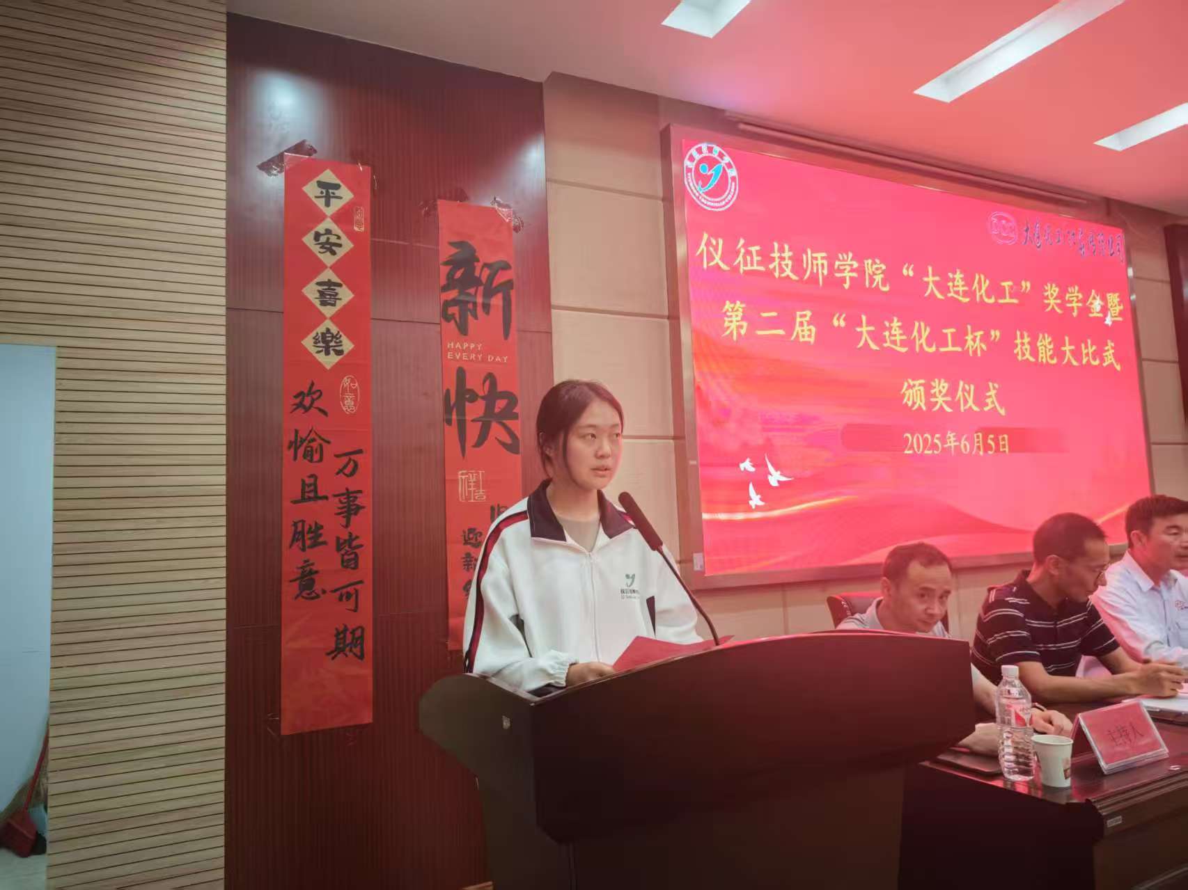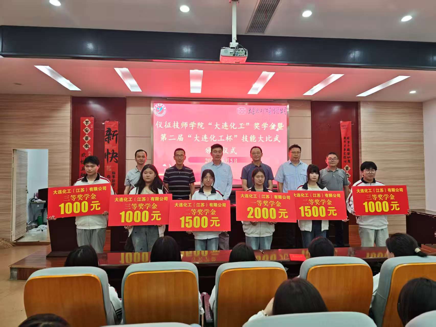 大连化工副总经理王德期和副部长王志伟分别致辞。他们对获奖学生表示热烈祝贺,高度赞扬了仪征技师学院在化工专业人才培养方面取得的成果,强调了企业对技能人才的重视与需求,并表示将持续深化与学院的合作,为学生提供更多实践与发展机会。