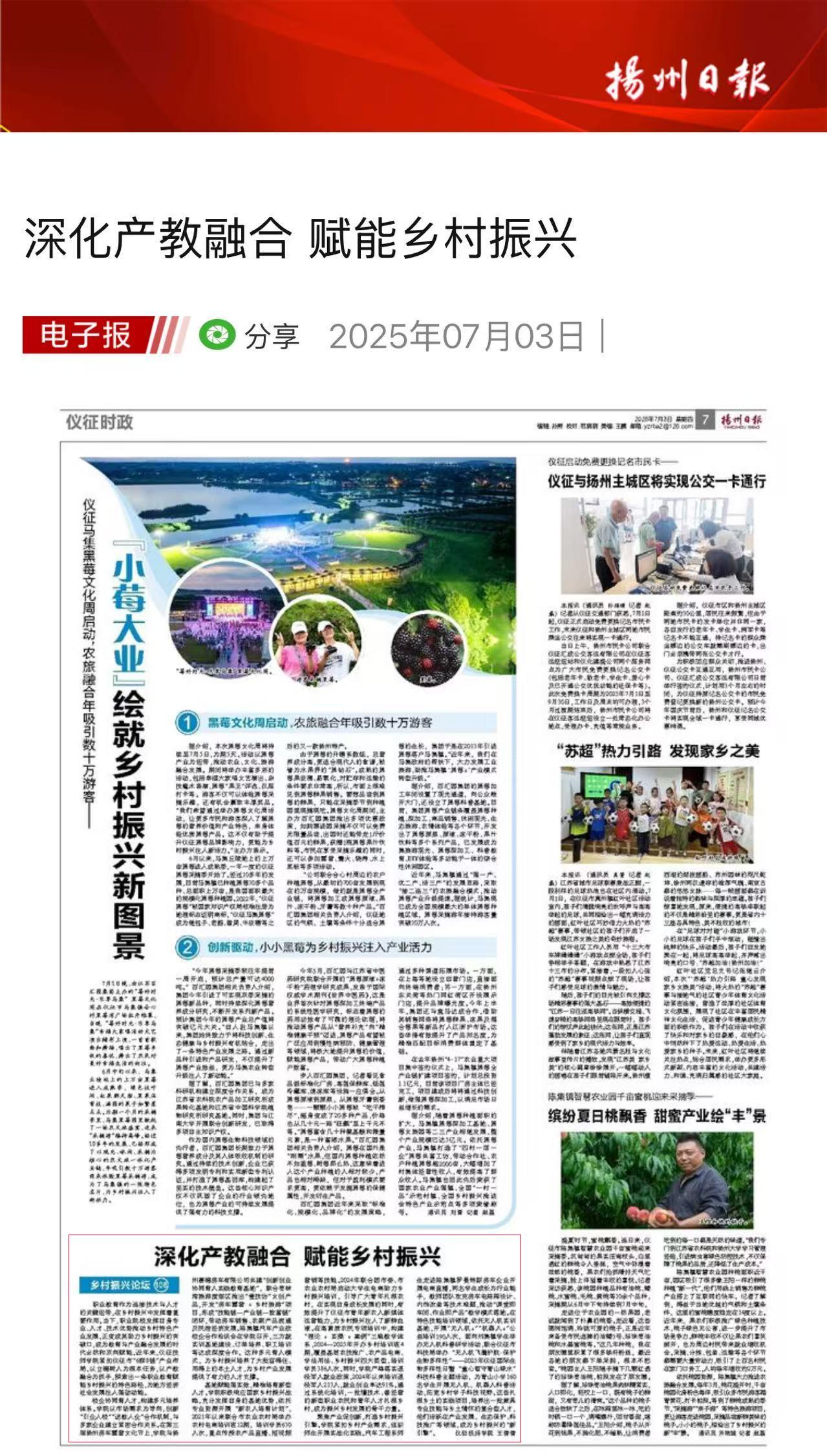 职业教育作为连接技术与人才的关键纽带,在乡村振兴中发挥着重要作用。当下,职业院校发挥自身专业、人才、技术优势推动乡村特色产业发展,正变成其助力乡村振兴的突破口,成为教育与产业融合发展的时代必然和双向赋能。近年来,仪征技师学院紧扣仪征市“6群8链”产业布局,以立德树人为根本任务,以产教融合为抓手,探索出一条职业教育赋能乡村振兴的特色路径,为地方经济社会发展注入强劲动能。