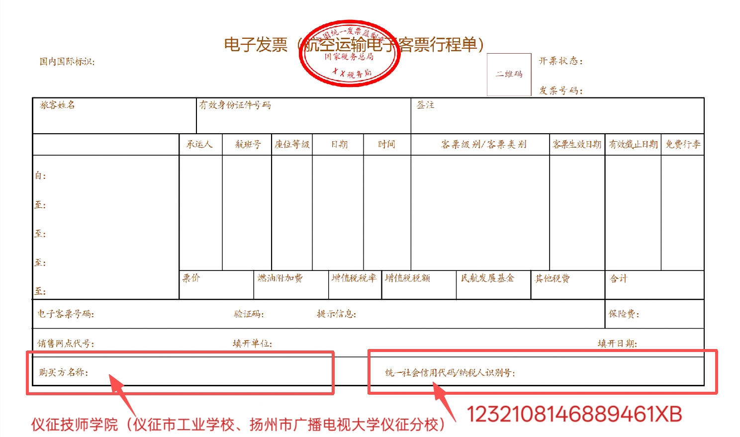 (航空电子发票 样票)