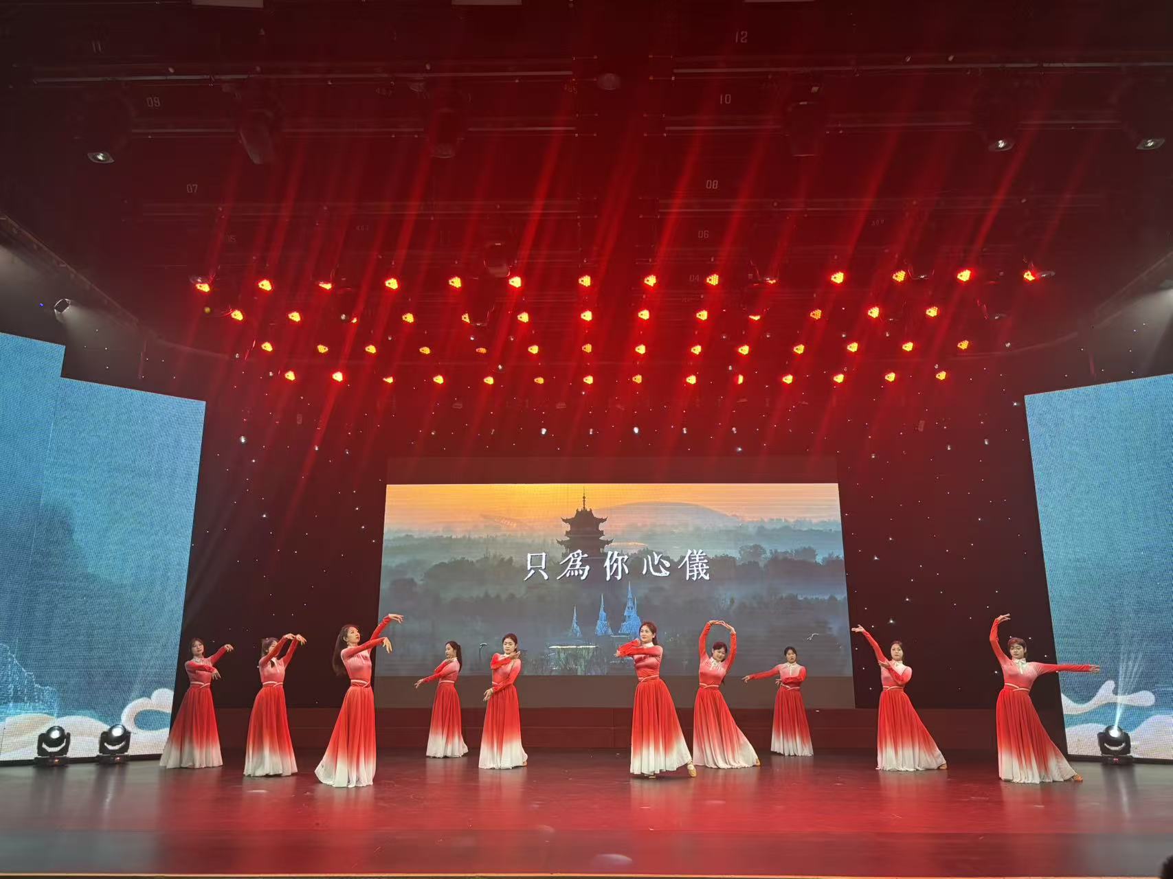 活动现场,电子信息系100名学生表演者率先登场,以《黄河大合唱》与《长江之歌》的交响合唱拉开序幕。雄浑激昂的旋律,瞬间串联起仪征的温润灵动与吴堡的厚重坚韧。随后,现代服务管理系带来歌伴舞《只为你新仪》。舞蹈演员身姿灵动舒展,用生动的演绎展现仪征的崭新风貌与蓬勃活力,让观众感受到这座城市的独特魅力。最后,现代服务管理系的同学们再度登场,以饱满炽热的情感演绎歌伴舞《我和我的祖国》,为活动画上圆满句号,也让“仪吴连心”的情谊在歌舞中进一步升华。