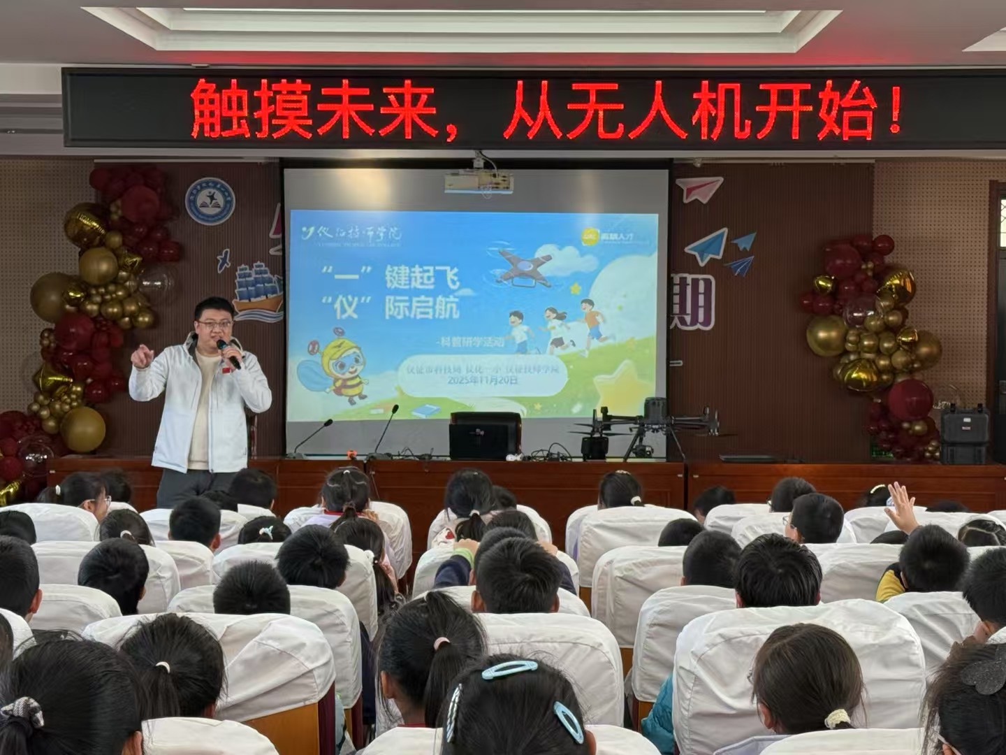 近日,仪征技师学院电气工程系无人机专业师生走进仪征化纤第一小学,为四年级学生带来了一场精彩的无人机科普研学活动。
