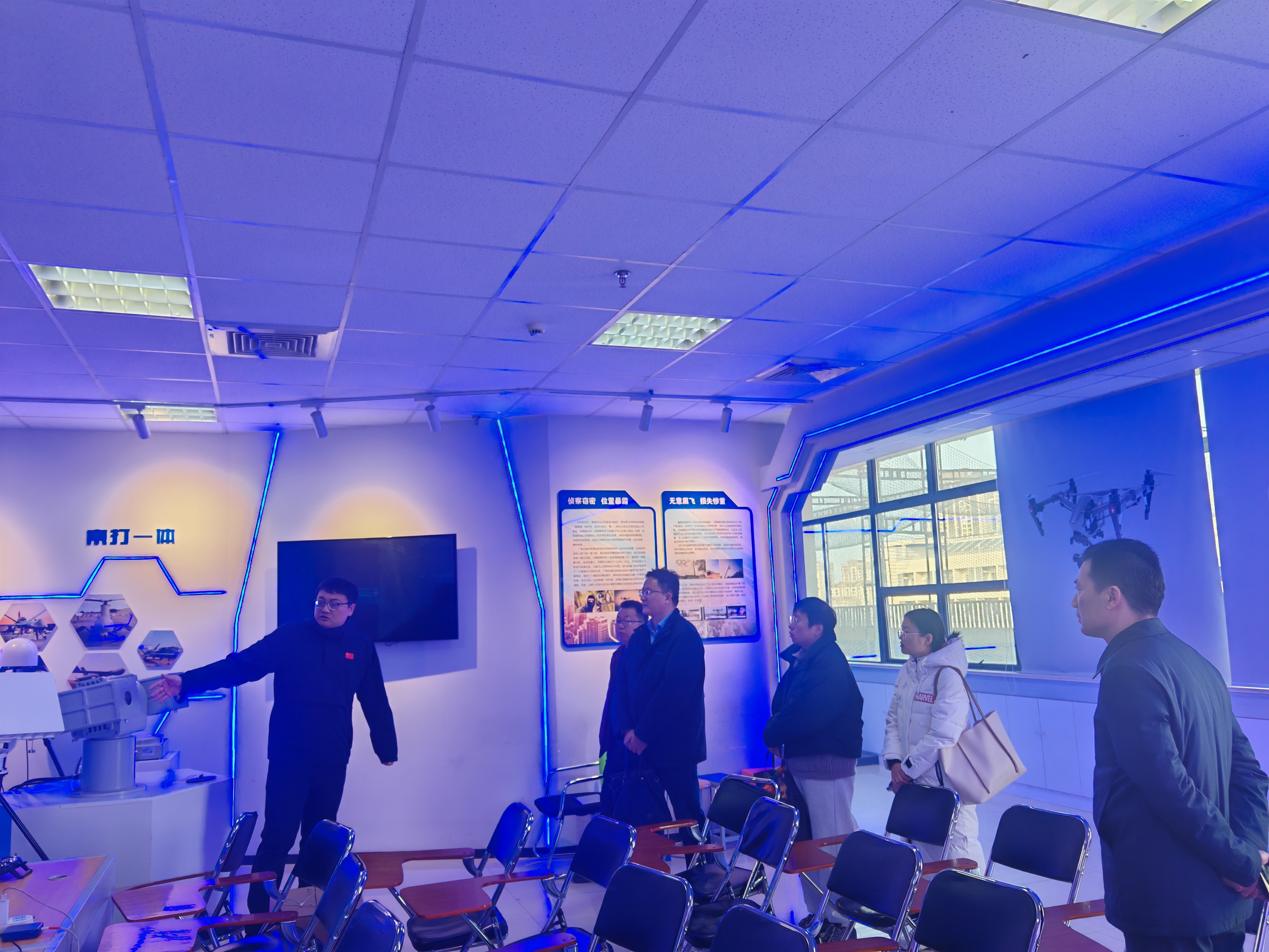 张兵副院长一行参观了我院无人机应用及反制实训基地,详细了解无人机应用及反制专业建设、实训设备配置及产教融合项目推进等情况。双方围绕低空技术应用场景及行业发展趋势进行了探讨交流。