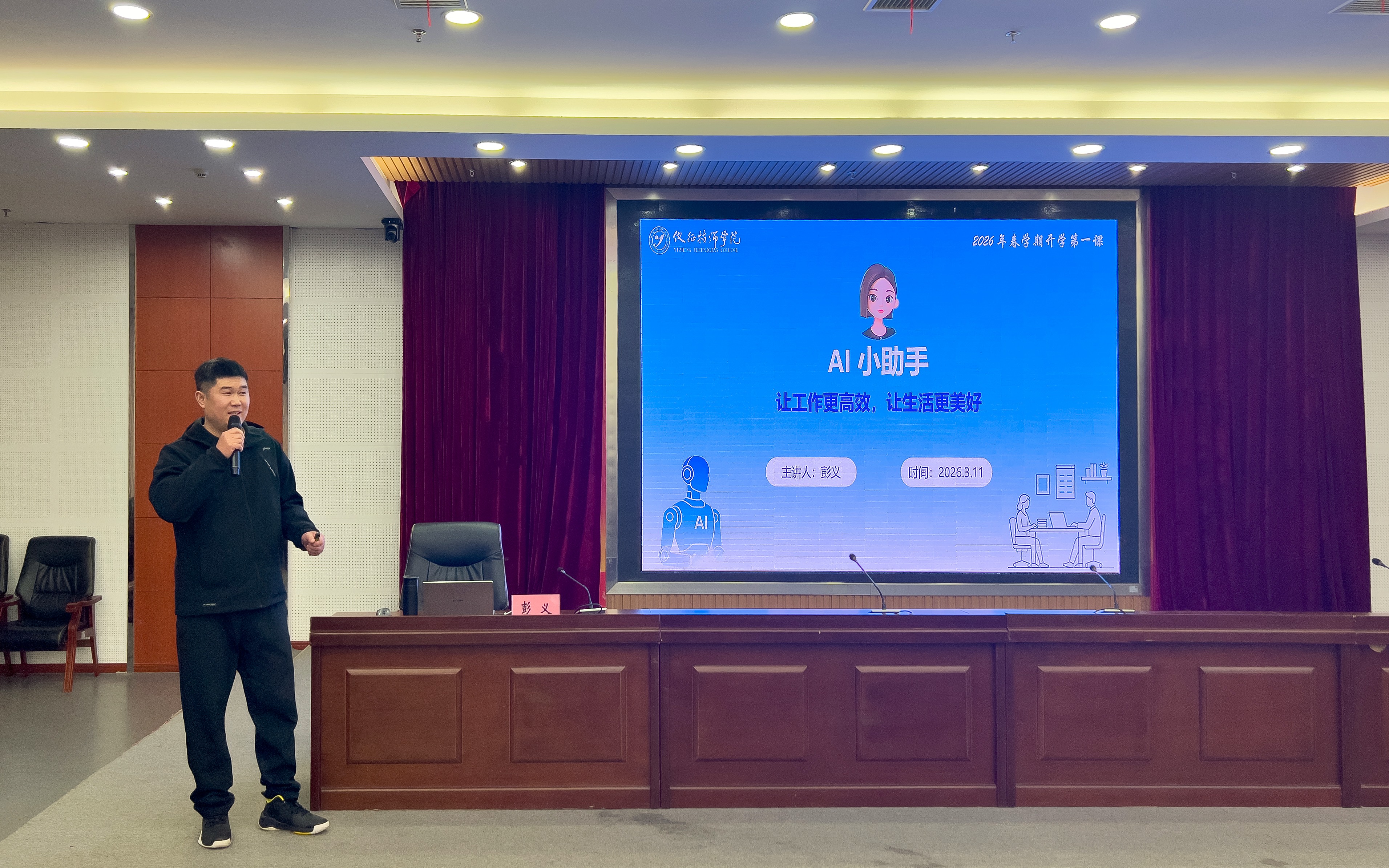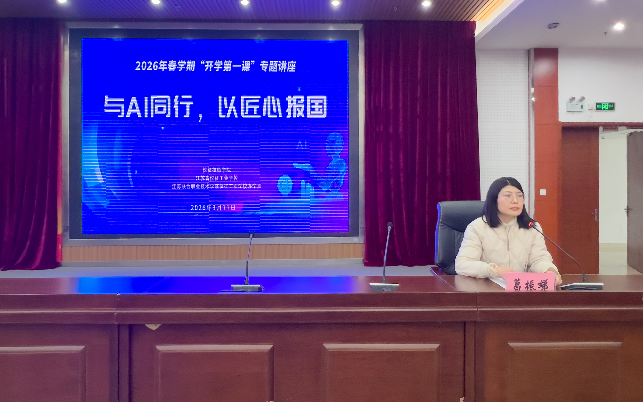 为引导师生紧跟人工智能发展浪潮,提升AI应用能力,3月11日下午,仪征技师学院2026年春学期 “开学第一课” 专题讲座在十楼报告厅如期开讲。本次活动以 “与AI同行,以匠心报国” 为主题,由教务处处长葛振娣主持。各系部师生代表,教务处、电子信息系党支部、团总支及行政第二党支部全体成员共同参与。