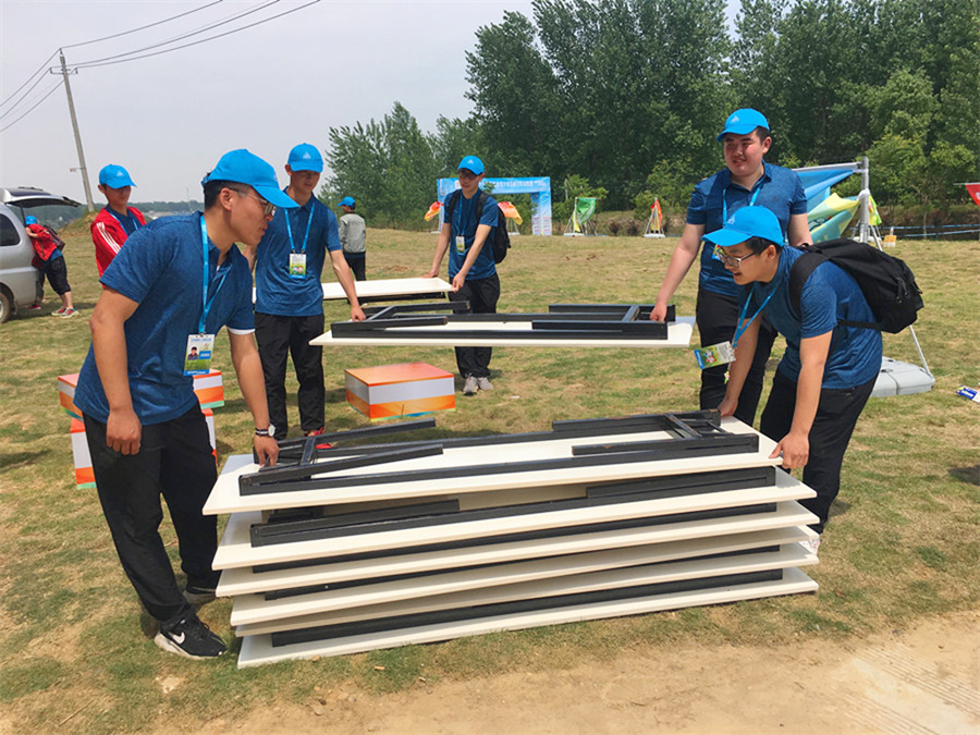 5月9日上午8点,汽车工程系团总支书记陈婧带队,20名竞赛组志愿者提前一天来到越野赛竞赛场地,布置赛道,搭建各种设施;下午1点30分,系团总支副书记余志勇带领另10名同学,走上自行车赛道,确认每位志愿者的服务位置和区域,为次日即将开始的的志愿服务做了详细的工作准备。