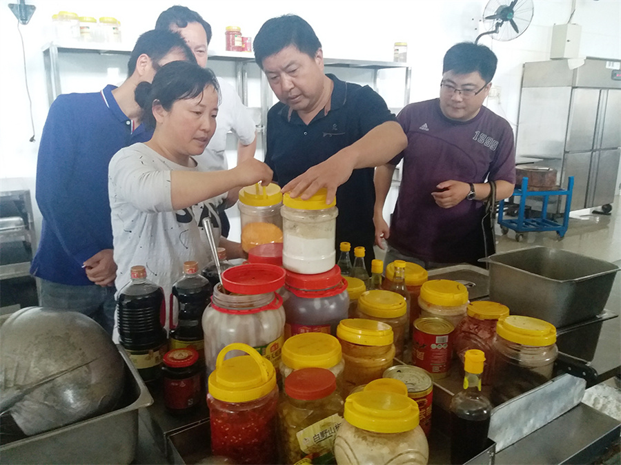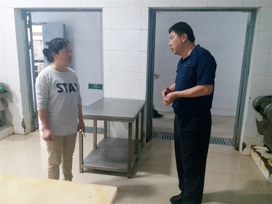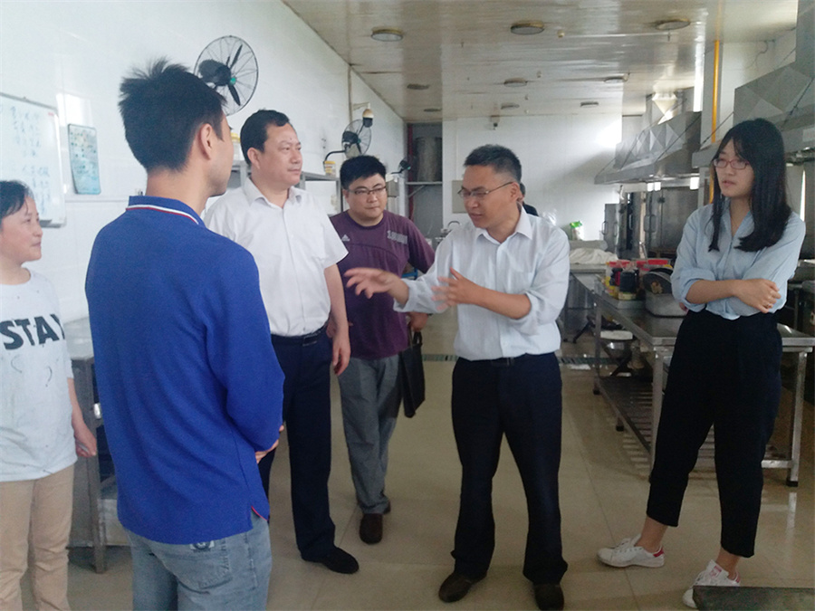 为保证在校学生的餐饮安全,今天上午11点半,扬州市食品药品监督管理局洪昊副局长在仪征市场监督管理局餐饮科科长张远峰陪同下,来我院检查指导工作。专家组成员实地查看食堂的食材储存、加工及售卖情况,就食材和加工品生熟分开、餐具保洁、饭菜的售卖等问题与食堂经营者做了详细的沟通和交流。学院东方科技服务有限公司彭军经理全程参与。