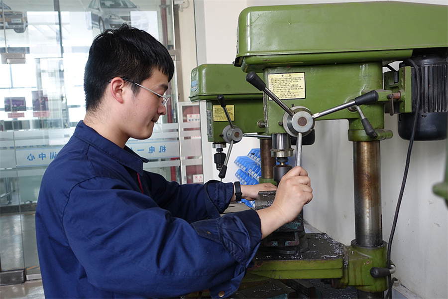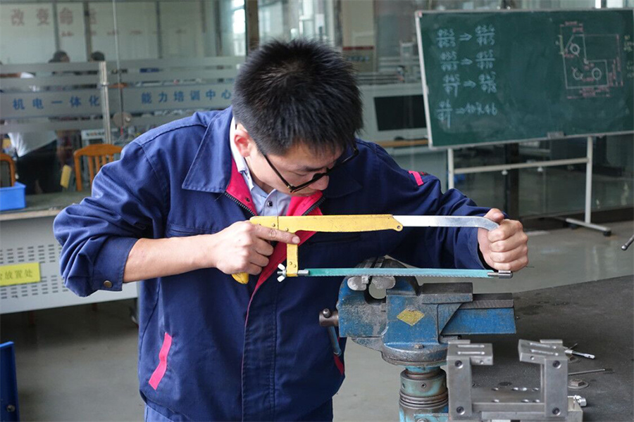 德国工商会AHK职业资格证书是以德国“双元制”职业培训为基础,培训期为3年。培训结束后,由各主管部门组织实施两次考试,一次是在第二学年举办的毕业考试Ⅰ,其成绩占总成绩的40%;第二次是第三学年毕业前的毕业考试Ⅱ,其成绩占总成绩的60%。每次考试都是在不同工种的考试委员会的全程监督下进行。学生通过培训分别参加两次考试,合格才能取得德国工商会职业资格证书。本次进行的“AHK机电一体化工毕业考试Ⅱ”理论考试时间为210分钟,实践操作为14个小时;学生在考试过程中要独立完成工艺设计、机械加工、情景对话、装配、调试等全部考核项目,才能完成考试任务。