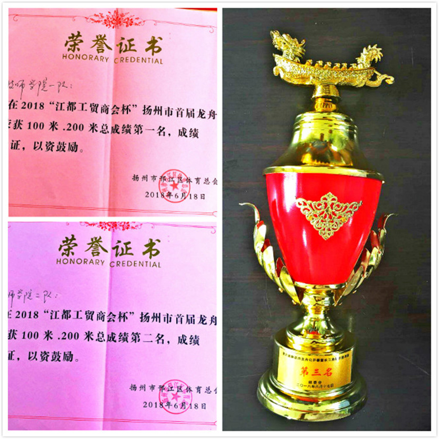 “鼓声三下红旗开,两龙跃出浮水来。棹影斡波飞万剑,鼓声劈浪鸣千雷。”端午节来临之际,我院龙舟队接连参加南京、扬州等地举办的龙舟赛事,捷报频传。6月17日,学院院龙舟队参加第六届南京市龙舟公开赛暨长三角城市龙舟邀请赛,喜获第三名,6月18日,学院两支龙舟队参加2018“江都工贸商会杯”扬州市首届龙舟大赛,再夺冠亚军!