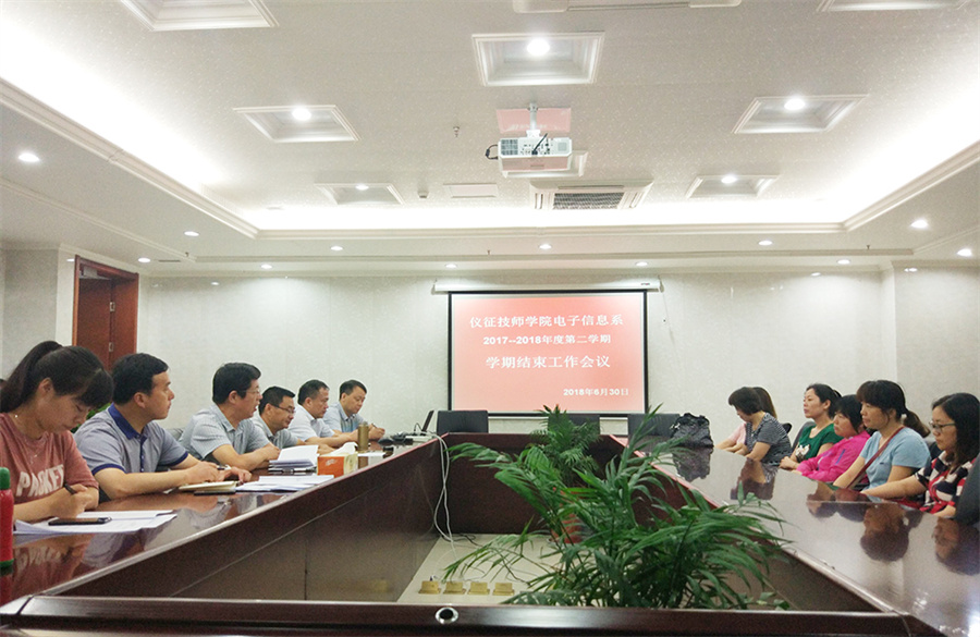时光荏苒,转眼一个学期在忙碌和充实中匆匆而过。为全面总结本学期工作,进一步完善管理,优化队伍,提升质量,努力实现系部内涵发展。2018年6月30日上午,电子信息系在图文信息楼901会议室召开了本学期期末工作总结会议,尹为国院长助理应邀出席此次会议,会议由系党支部书记宰倩倩主持,我系全体教师参加了此次会议。会议的主要议题是总结本学期工作情况及放假前工作的部署。