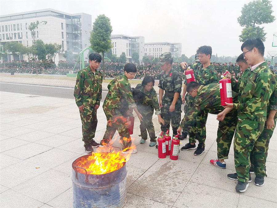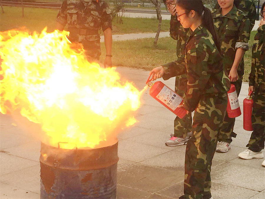 新生消防安全教育是我院新生入学教育的重要内容之一,9月6日下午4时,学院后勤保卫处、学生工作处联合邀请市消防中队来我院指导新生开展消防安全演练。学生工作处以班级为单位,将学生分成若干小队,每队指派一名武警战士做教员,讲解和演示如何使用干粉灭火器、提示灭火要点及相关注意事项。随后,后勤保卫处安排员工将事先准备好的点火设施(废旧油桶、旧拖把、汽油)点着,学生踊跃报名参加灭火器灭火实践操作。演练活动不仅让学生掌握了灭火器的使用方法,还了解到火情发生时的应对和逃生措施,达到了预期效果。