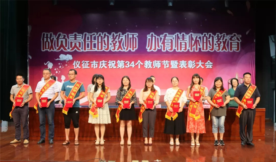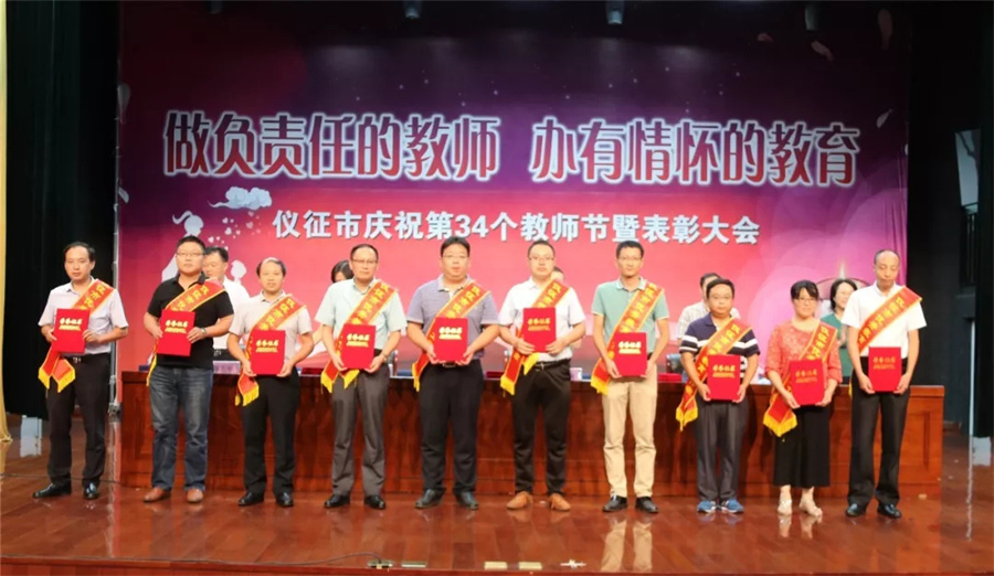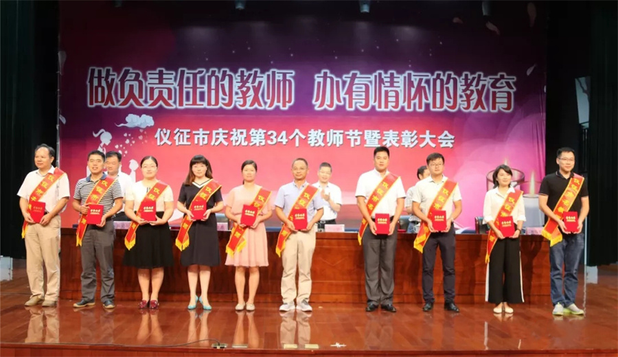 金风送欢笑,丹桂花香飘。9月10日,仪征市召开庆祝第34个教师节暨表彰大会,隆重表彰在全市教育工作中涌现出来的优秀教育工作者和“名教师、名班主任、名校长”。