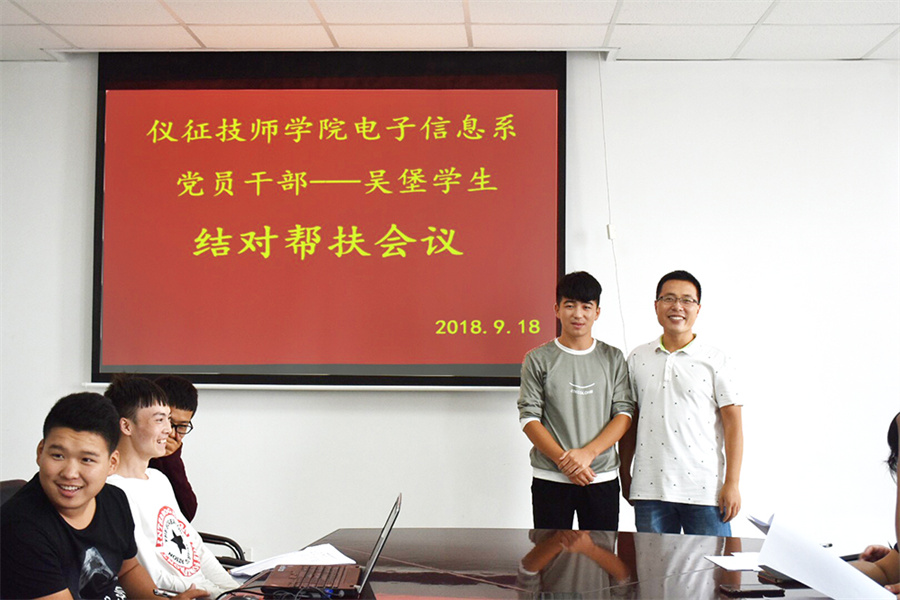 为更好推进“两学一做”教育常态化、制度化,发扬党员干部爱岗敬业精神,充分发挥党员的先锋模范作用,让远道而来的陕西吴堡学生更快的适应我院的学习生活,更好的融入电子信息系这个大家庭。9月18号下午,电子信息系在图文信息楼七楼东会议室举行师生“一对一”结对帮扶活动。系部分党员干部、班主任朱波老师及九名受帮扶学生共同参加了此次会议,会议由系分管办公室工作的李林副主任主持。