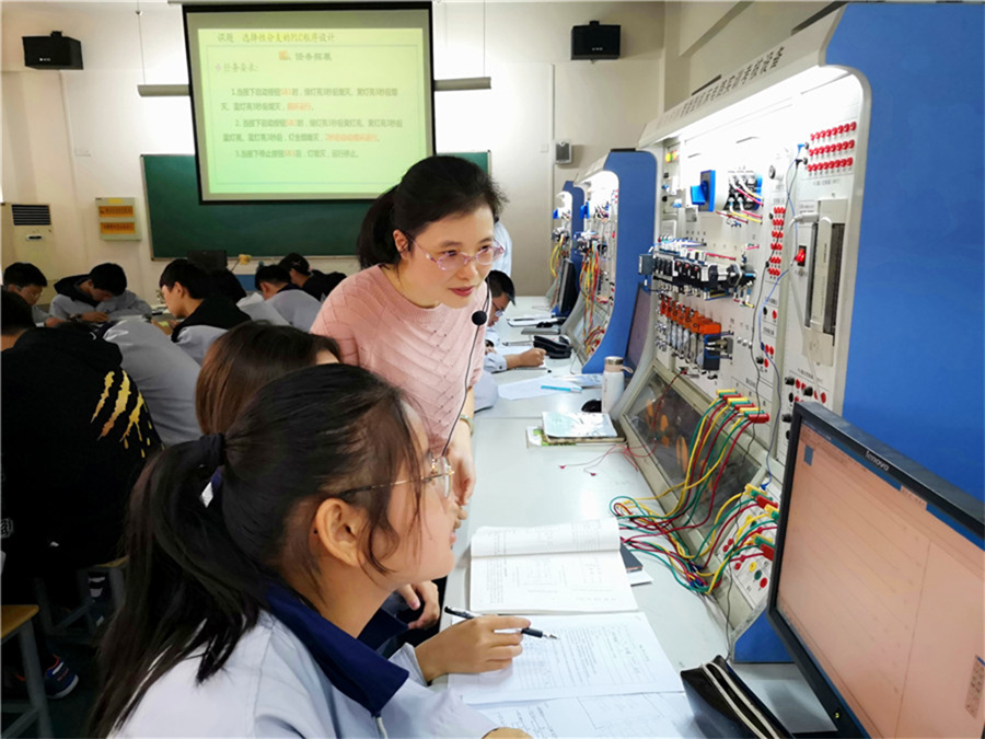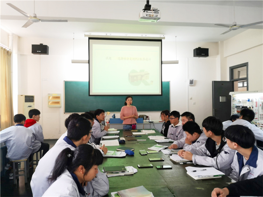 10月16日上午,我院电气系江苏省技工院校专业带头人、扬州市技工院校教学名师李翠兰老师在电气实训室开设了一节题为《选择性分支的PLC程序设计》名师示范课,各处室、系部等二十余名教师前往现场观摩、学习。