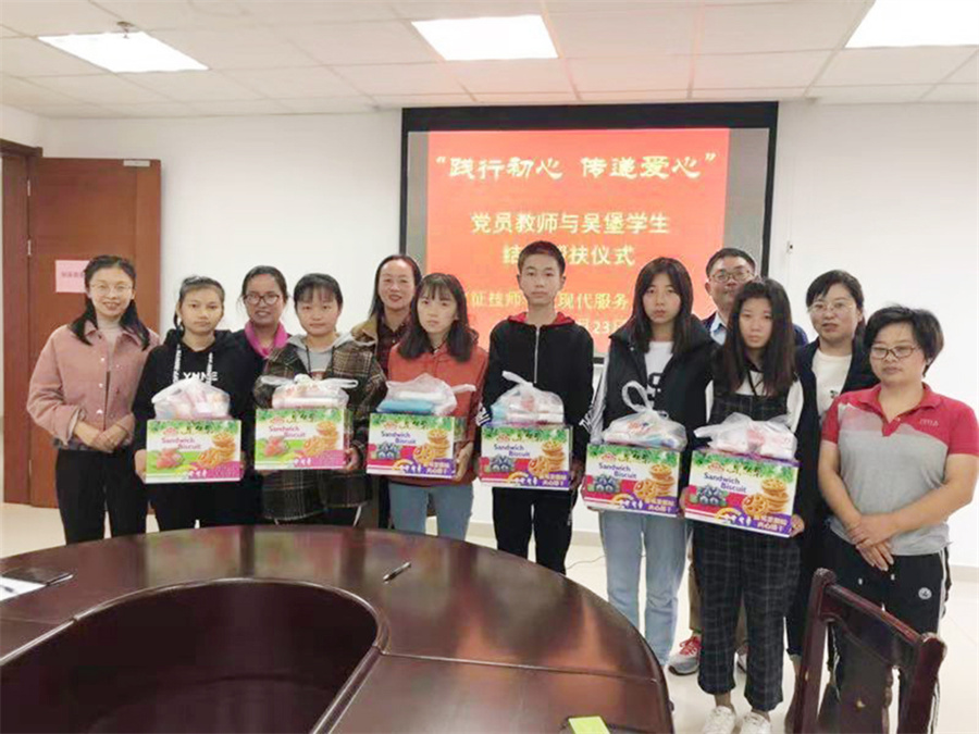 根据学生的实际情况,支部议定,实行“一对一”结对认亲帮扶,,采用经常性交流谈心的方式,关注成长,陪伴关爱。仪式上,党员教师和帮扶对象签订帮扶协议。吴堡同学接受了党员教师馈赠的慰问礼品。