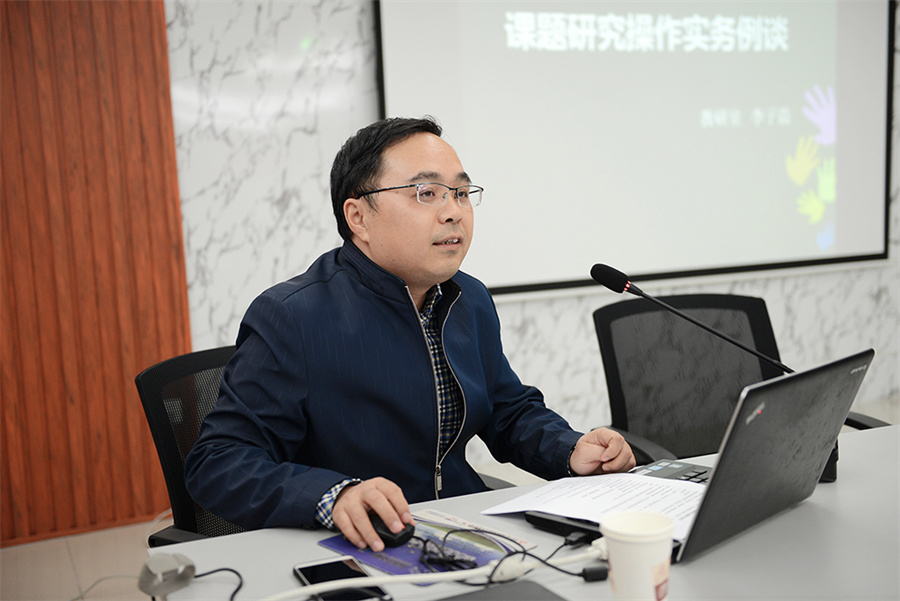 李子震副主任结合多年的教育教学课题研究工作经验与体会,主要从教师为什么研究课题、课题从何而来、如何研究课题等几方面做了详细的讲解,讲座紧扣实际、内容丰富、例证翔实,根据课题申报和实施过程当中可能会遇到的一些问题,提出了有效的建议和对策,具有很强的实际操作性和针对性。
