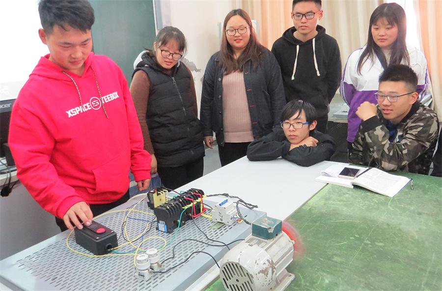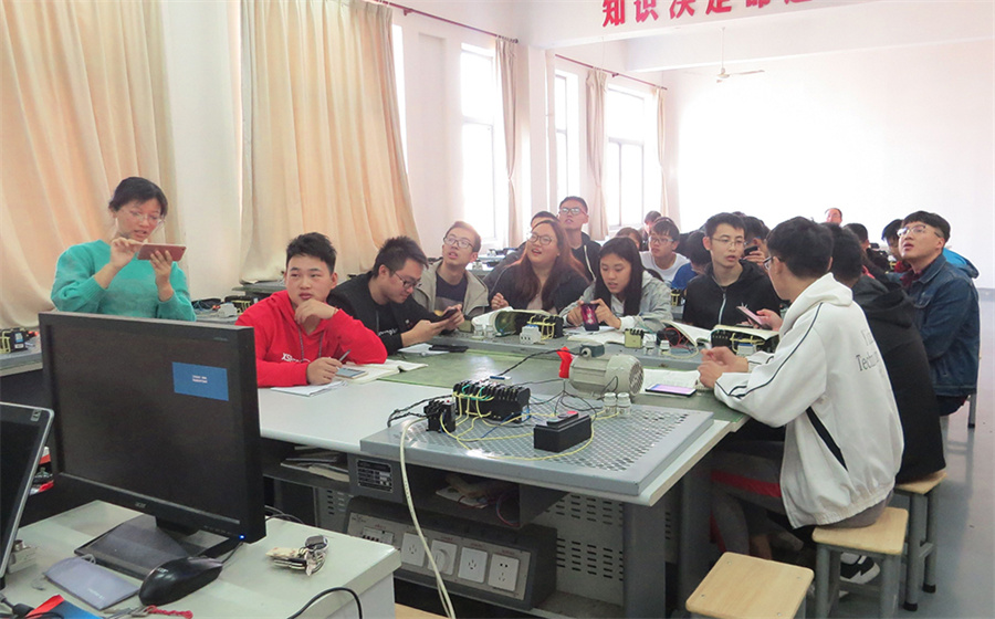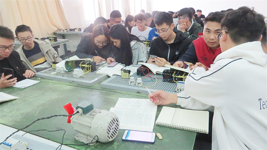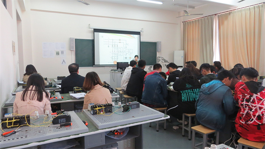10月31日下午,我院仪征市名师肖慧老师在电工实训室开设了一节题为《三相异步电动机正反转控制线路》名师示范课,各处室、系部等多名教师前往现场观摩、学习。