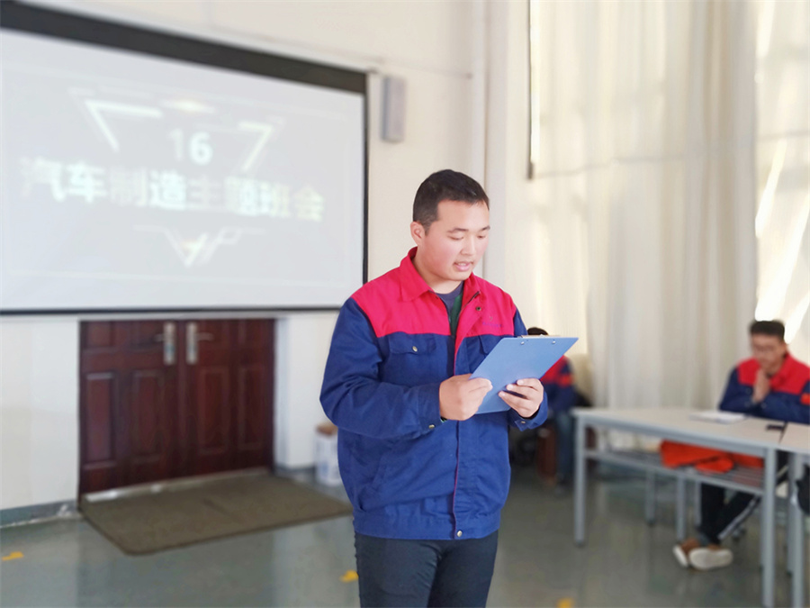 11月23日下午,汽车工程系16汽车制造与装配高级班在整车维护与检测实训中心M1楼开展了“点燃青春激情,放飞职业理想”之“爱有双十一”主题班会活动。我院副院长周志红、学工处副处长任国庆、汽车工程系相关领导及各班级学生代表出席了活动。
