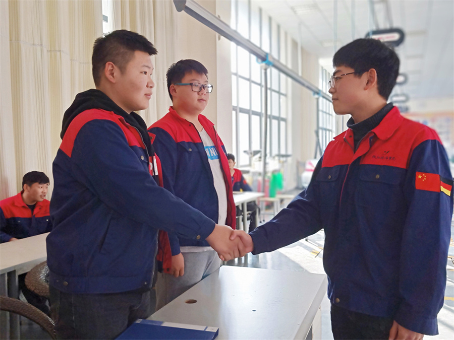 班会设计了四个主题小活动。首先是学生代表谈“工学交替”的心得与收获,大家从工作中感触到不仅要敬业、乐业、勤业,更要精业;接着的“蒙眼拆装手动变速器”技能展示,掀起班会一个小高潮,通过对汽车零部件结构的熟知,学生在装配速度和技巧上更加展示出“工匠精神”的专注度,实力相当的两位选手,最后差距在倒挡齿轮的安装上,以此可见专业技能更需精益求精;随后“招聘现场”的小品,幽默风趣地反映出用人单位在招聘员工时综合素质与衡量品行的高标准要求;最后同学们在 “谁是卧底”小游戏中快乐地结束了主题班会。