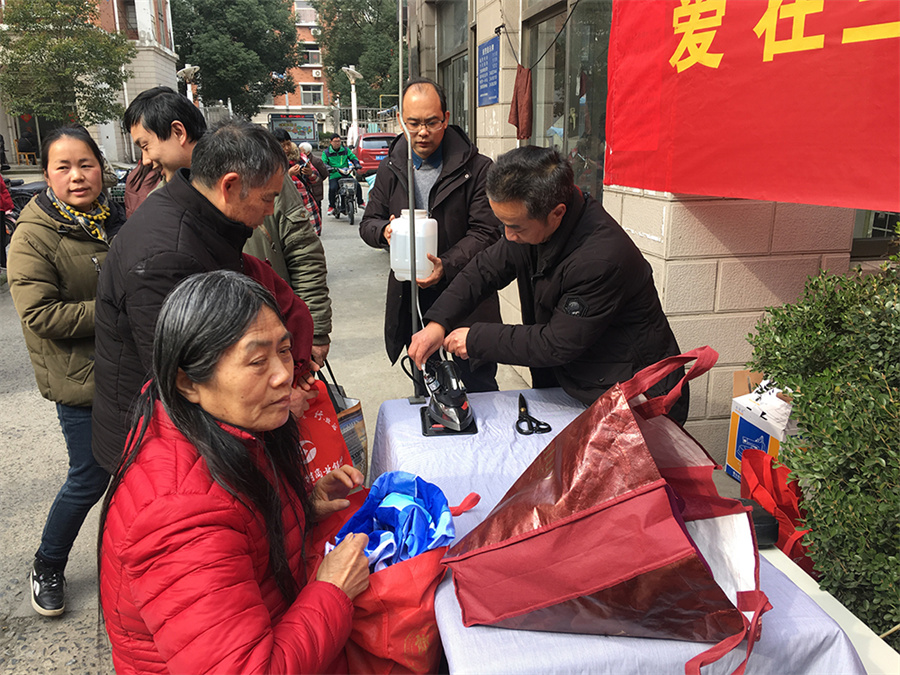 活动现场,糜泽锋主任、戴红梅书记帮助搬运设备,进行活动宣传。吴志忠副主任现场为社区居民进行服装维修、服装熨烫等生活服务。吴主任不仅帮助市民解决了服装缝补、熨烫等方面的难题,而且耐心和咨询市民进行攀谈,科普了大量的服装挑选、洗涤、保养等方面知识。