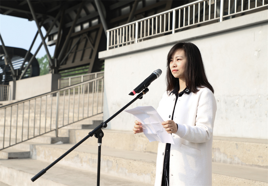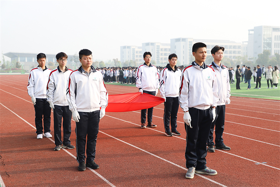 迎着绚丽多姿的朝霞,国旗班护卫队的同学迈着矫健有力的步伐护送国旗。在雄浑嘹亮的国歌声中,全体师生面向冉冉升起的五星红旗庄严肃立,行注目礼。升旗仪式结束后,系党支部宰倩倩书记作了国旗下讲话。宰书记希望同学们站在无数先烈用献血染红的五星红旗下,珍惜来之不易的和平生活,心怀感恩,铭记历史,继承先辈遗志,传承民族精神,充分意识到我们肩负着国家和民族的希望,自强不息、勤奋学习,做新时代的奋斗者和追梦人。