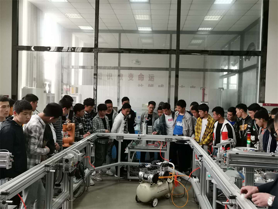 4月25日上午,青海海南州职业技术学校游学师生来到机电工程系进行见习。为了做好本次接待工作,机电工程系做了充分准备,系部数控技术应用专业的扬州市教学名师陈广兵副主任,机电一体化教学名师陈军副主任和系教务科薛文军科长分别对数控、机电和模具三个专业进行了深入细致的介绍。