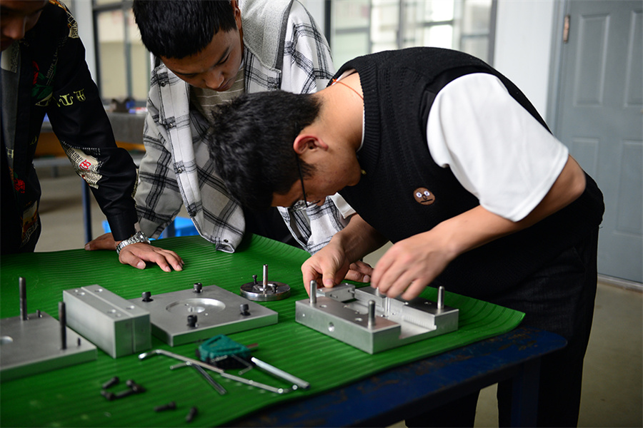 薛文军老师用浅显易懂的语言让同学们对模具制造专业有了初步认识,17级中德诺浩班的学生还为研学师生演示复杂模具拆装,展现了机电工程系学生扎实的专业技术。