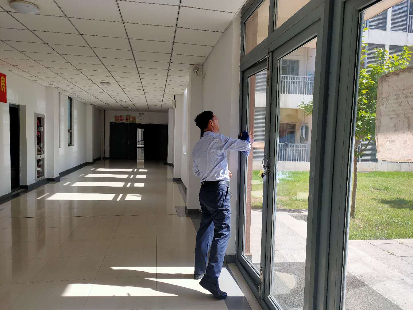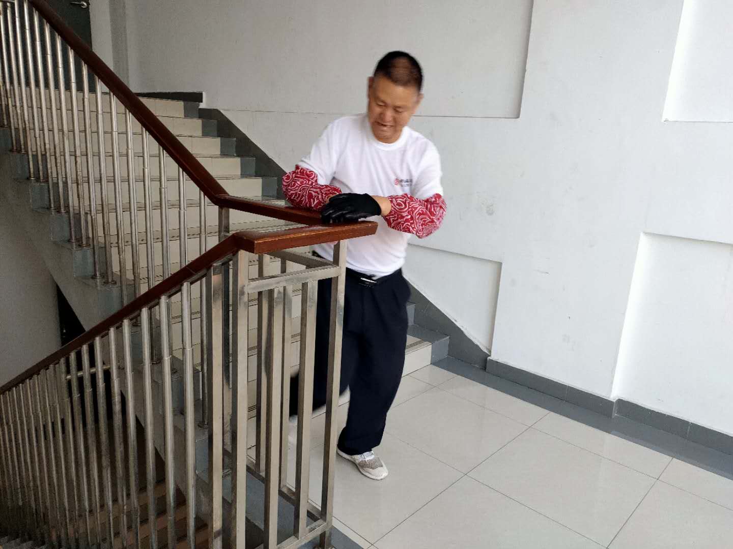 在平时工作的基础上,宿舍管理员们对照评比要求,分工打扫,协作清理,共同美化环境。